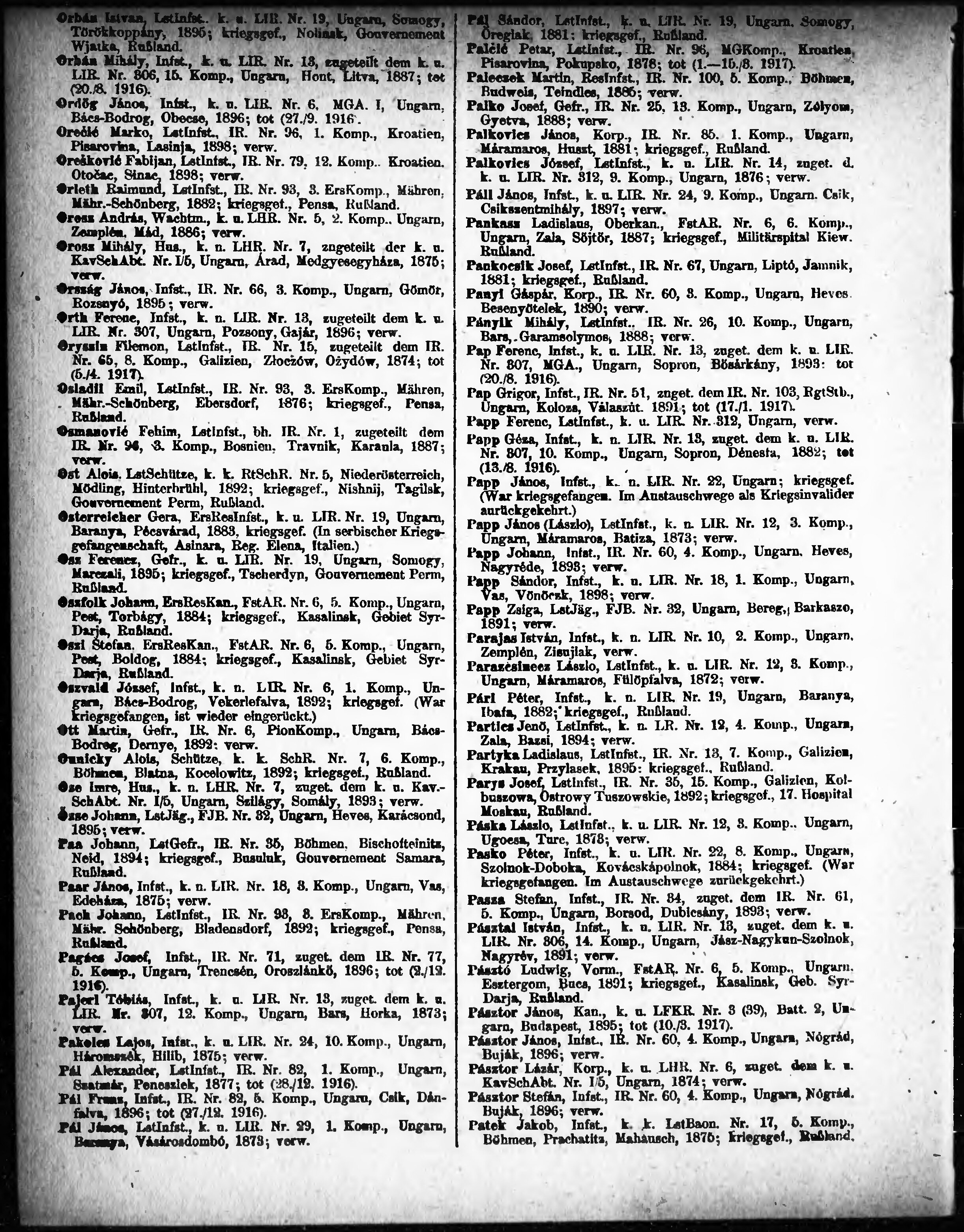 Verlustliste ausgegeben am