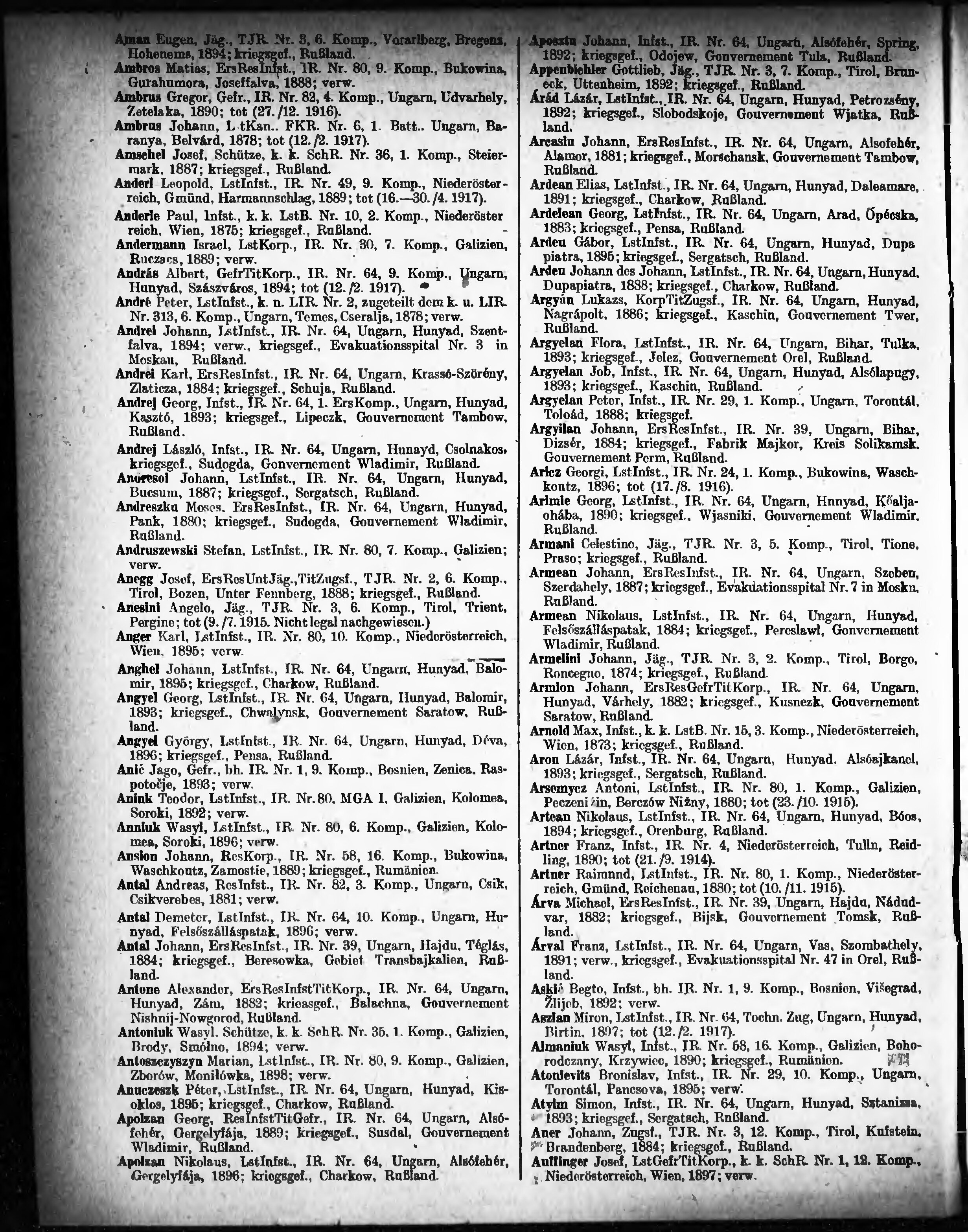 Verlustliste ausgegeben am