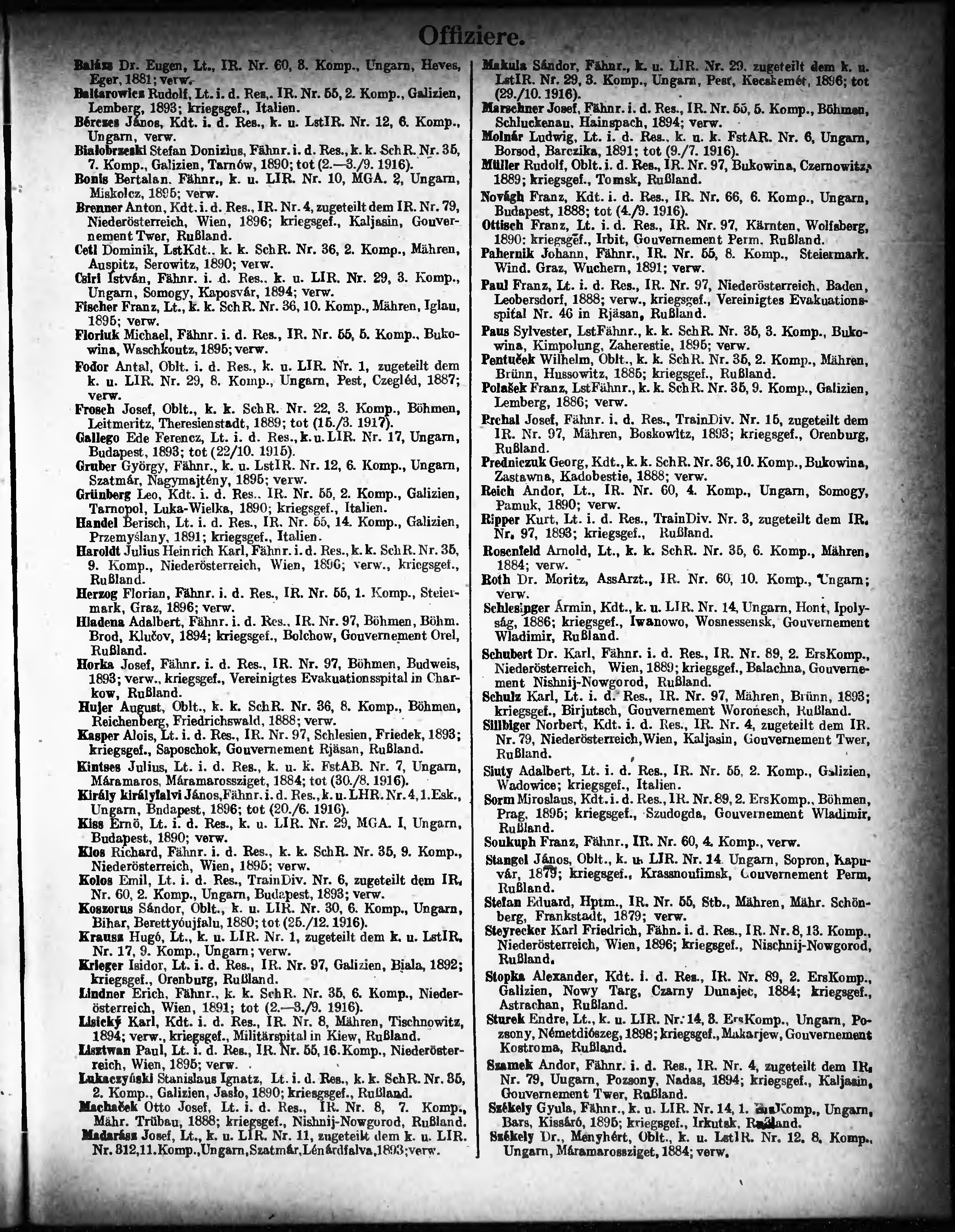 Verlustliste ausgegeben am