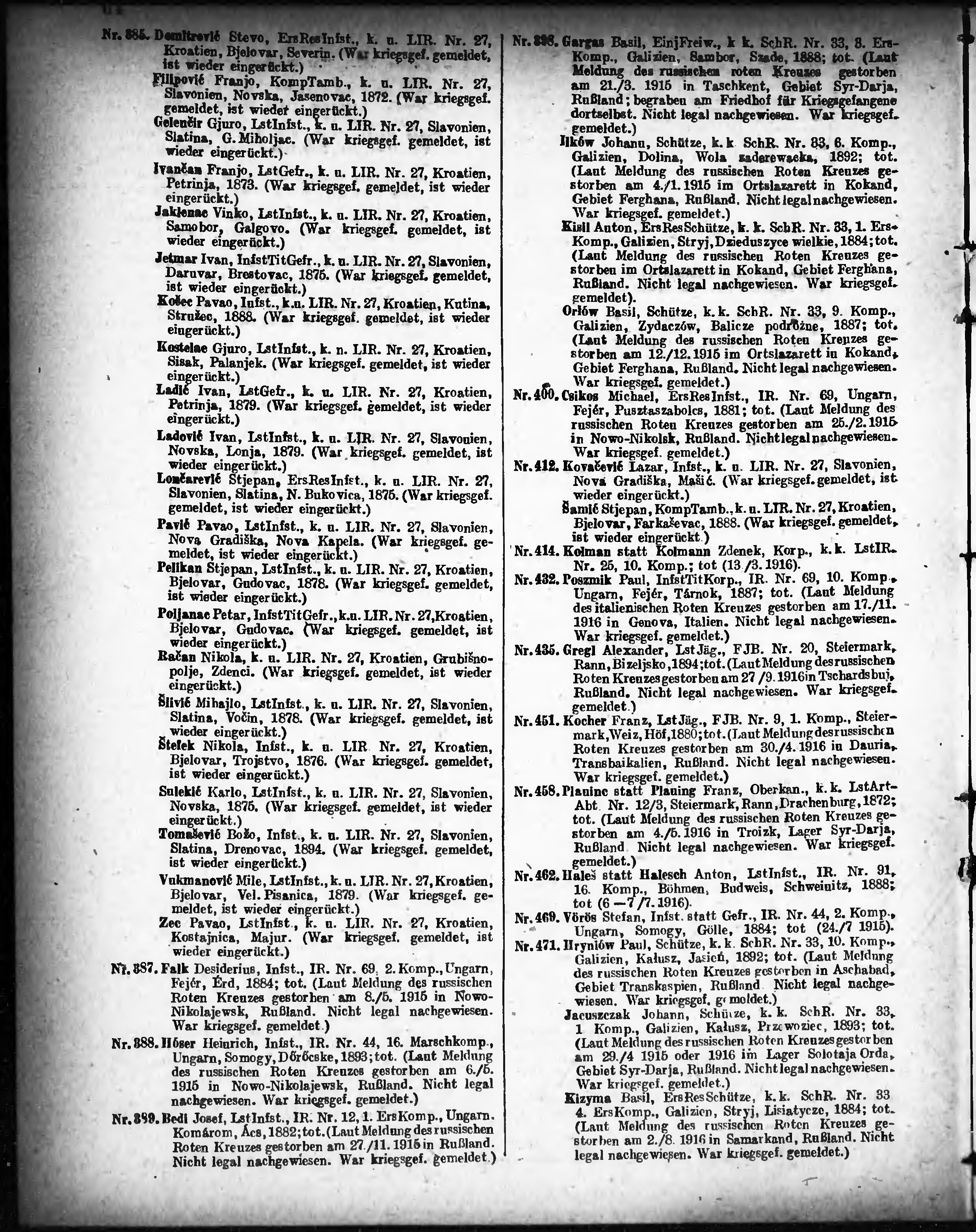 Verlustliste ausgegeben am