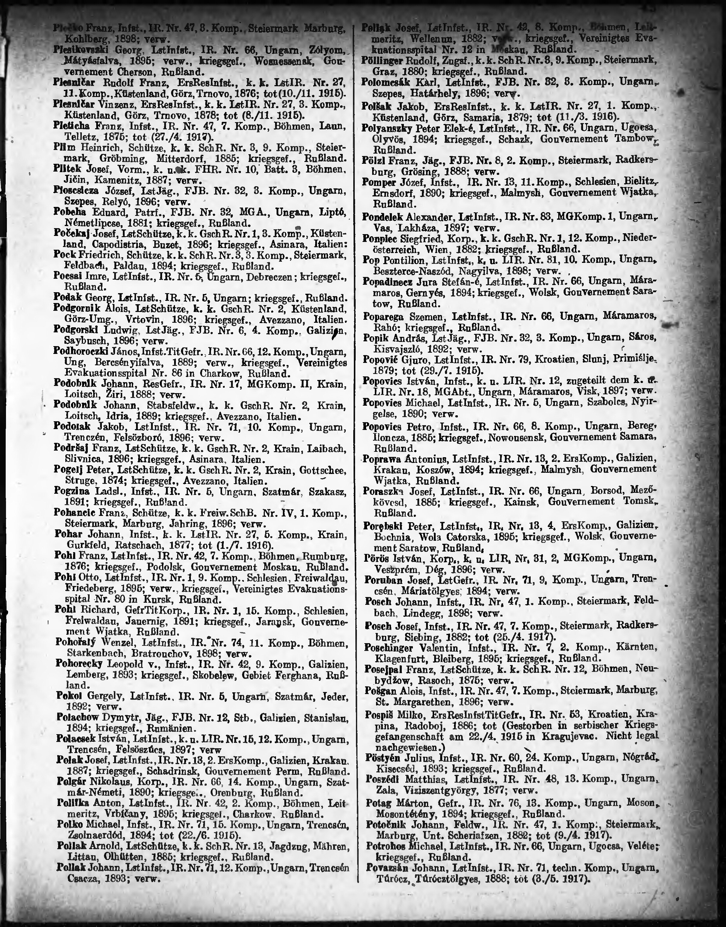 Verlustliste ausgegeben am