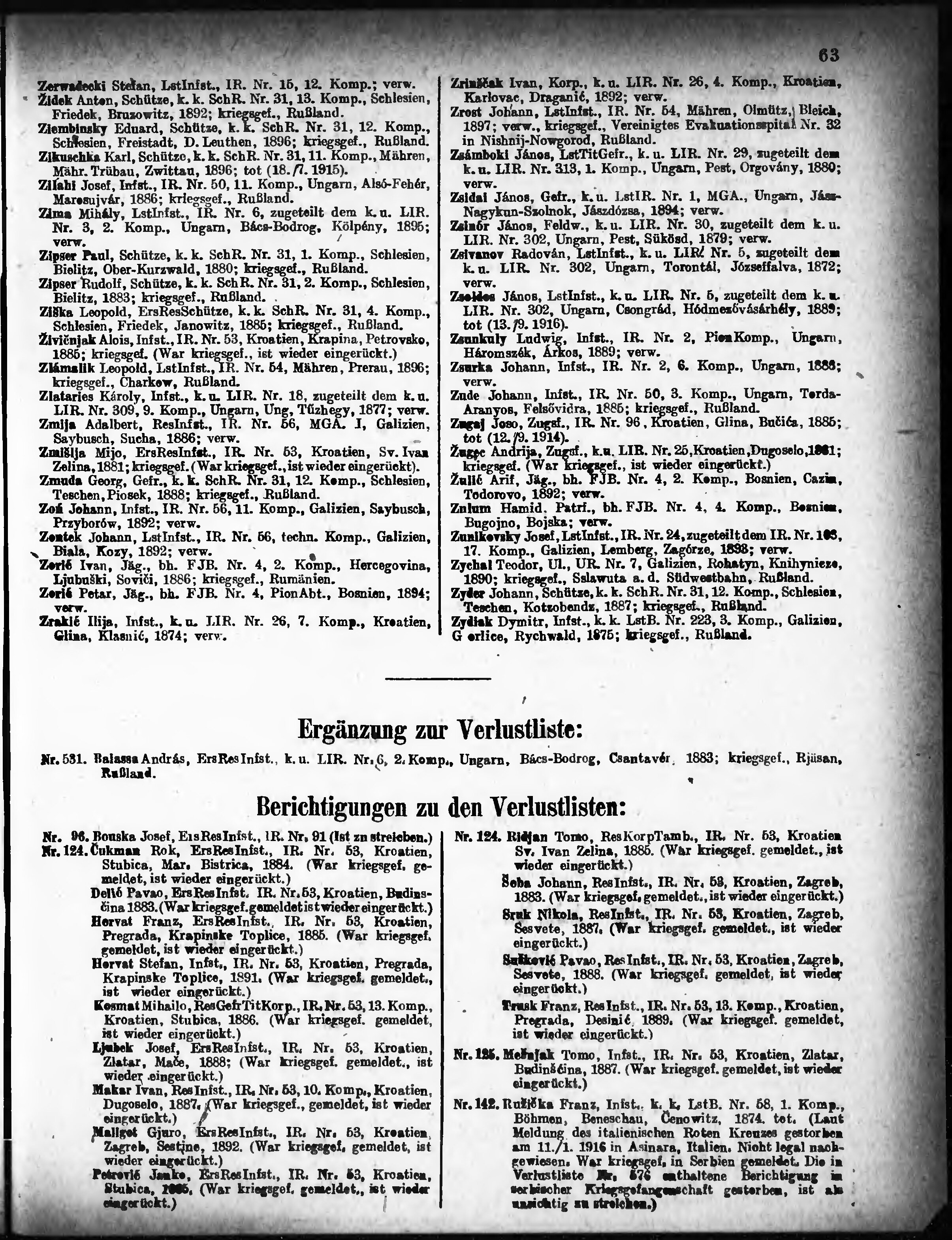Verlustliste ausgegeben am