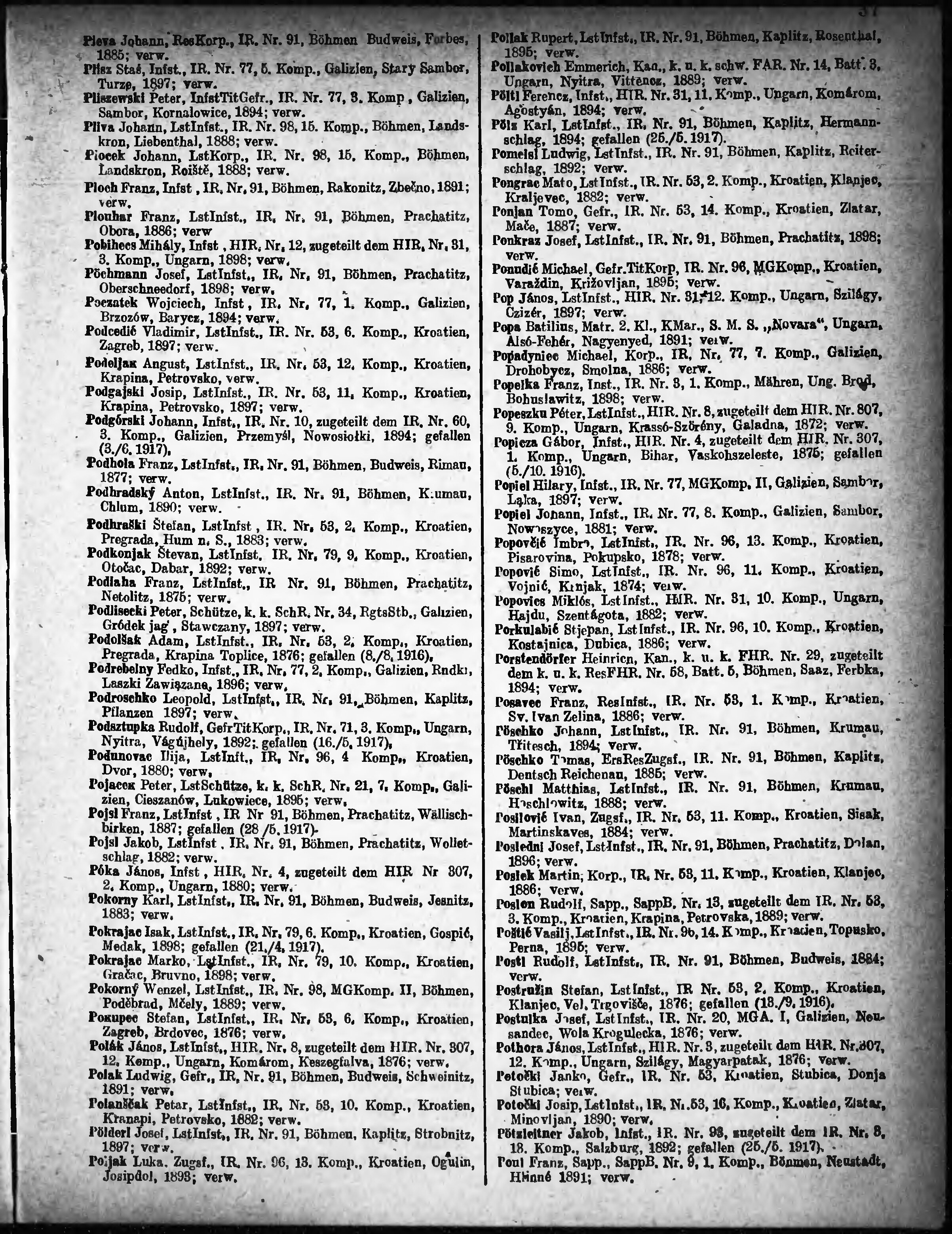Verlustliste ausgegeben am