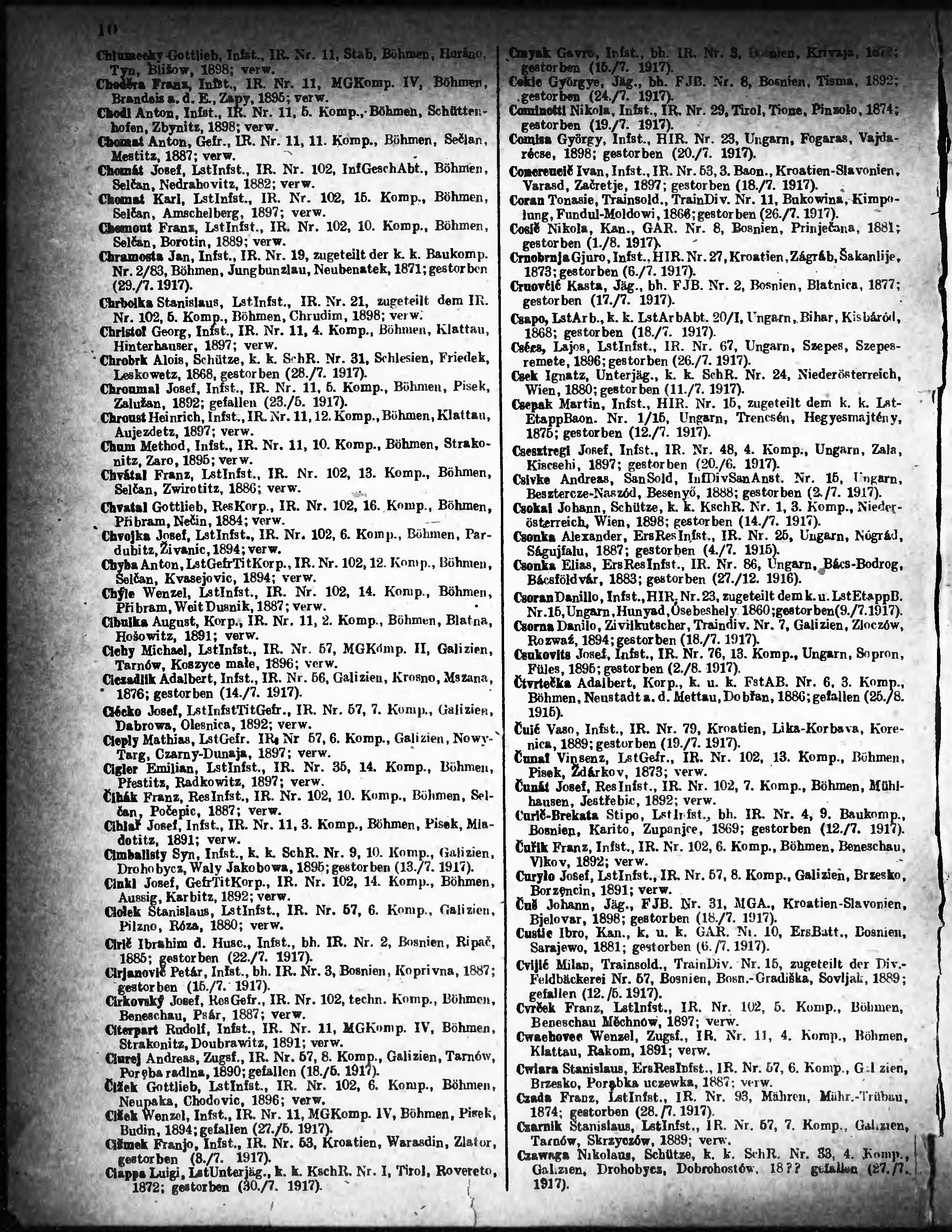 Verlustliste ausgegeben am