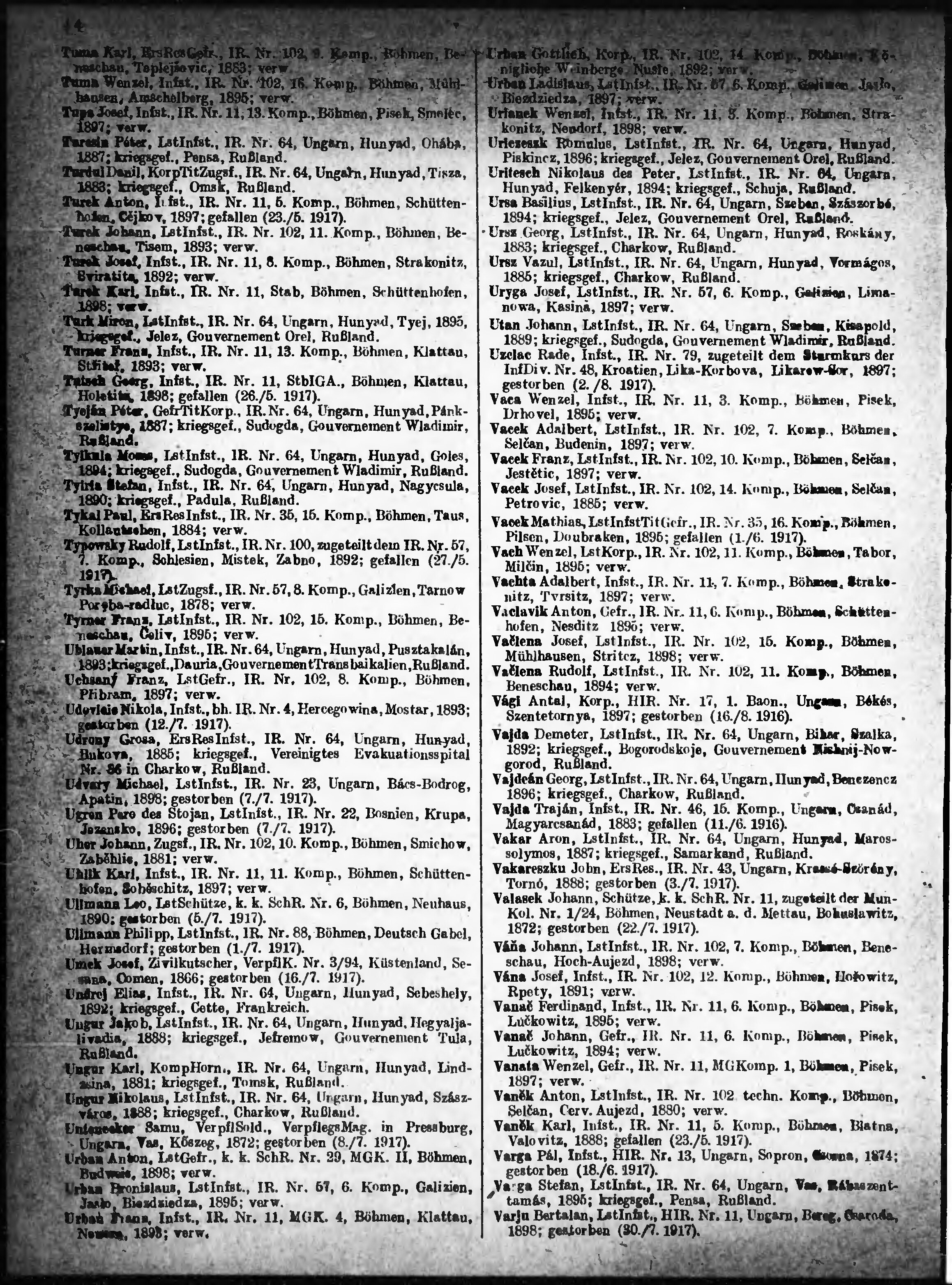 Verlustliste ausgegeben am