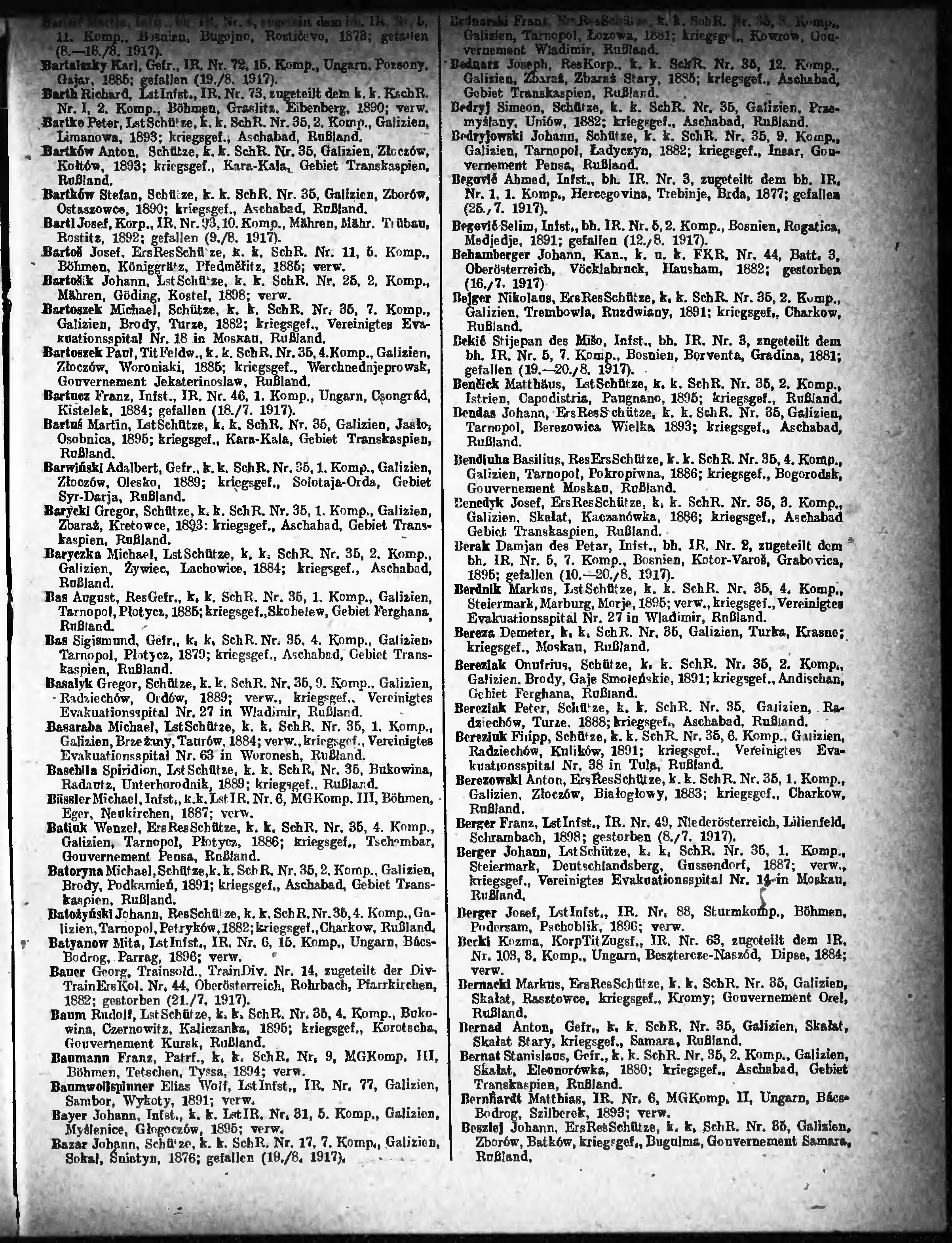 Verlustliste ausgegeben am