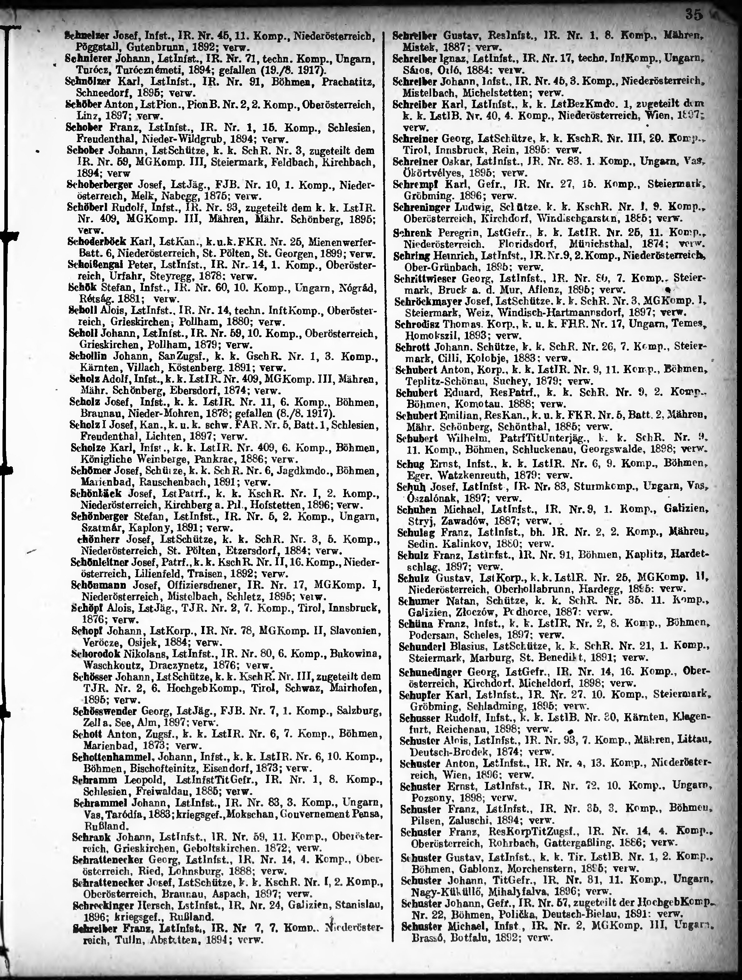 Verlustliste ausgegeben am