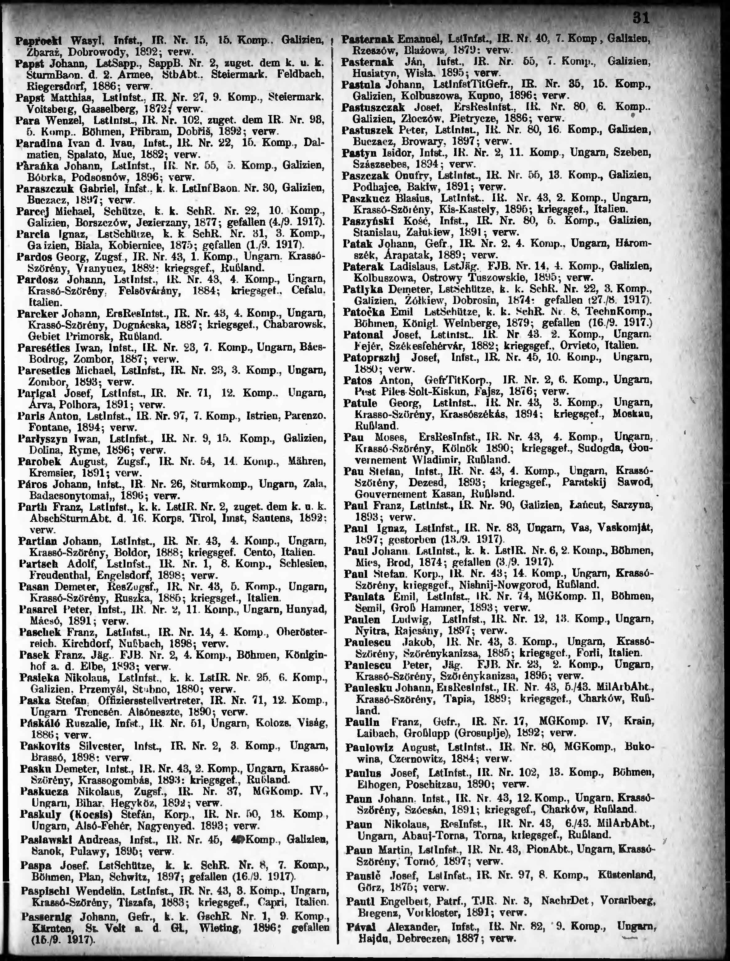 Verlustliste ausgegeben am