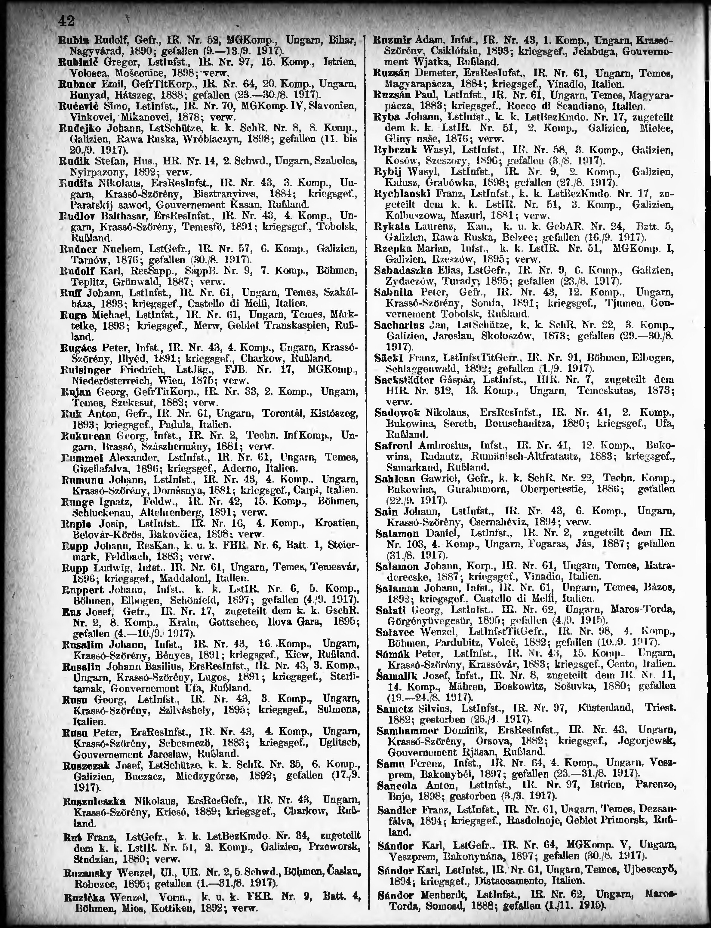 Verlustliste ausgegeben am