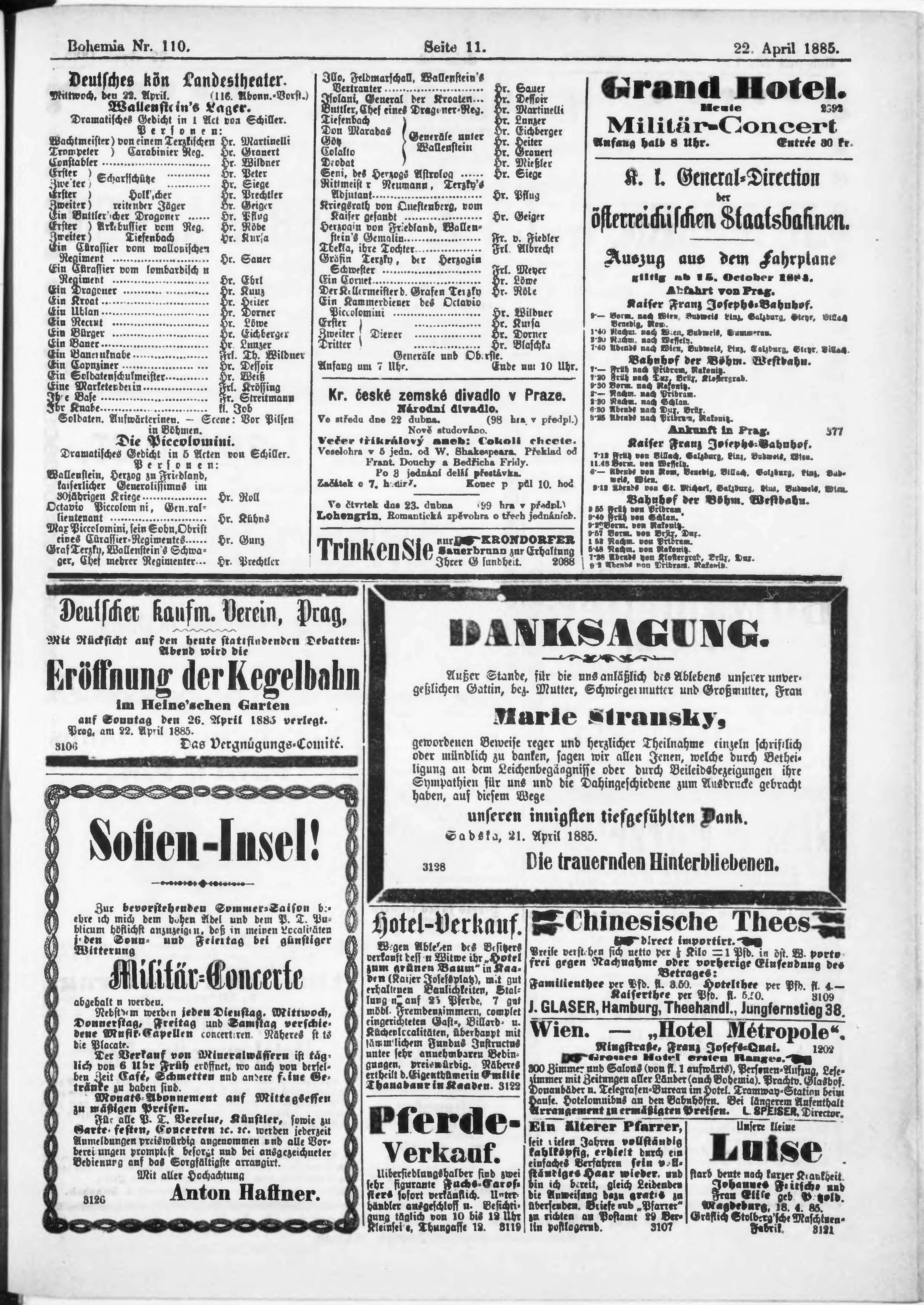 * Datum vydání výtisku: 22.4.1885 Číslo výtisku: 110