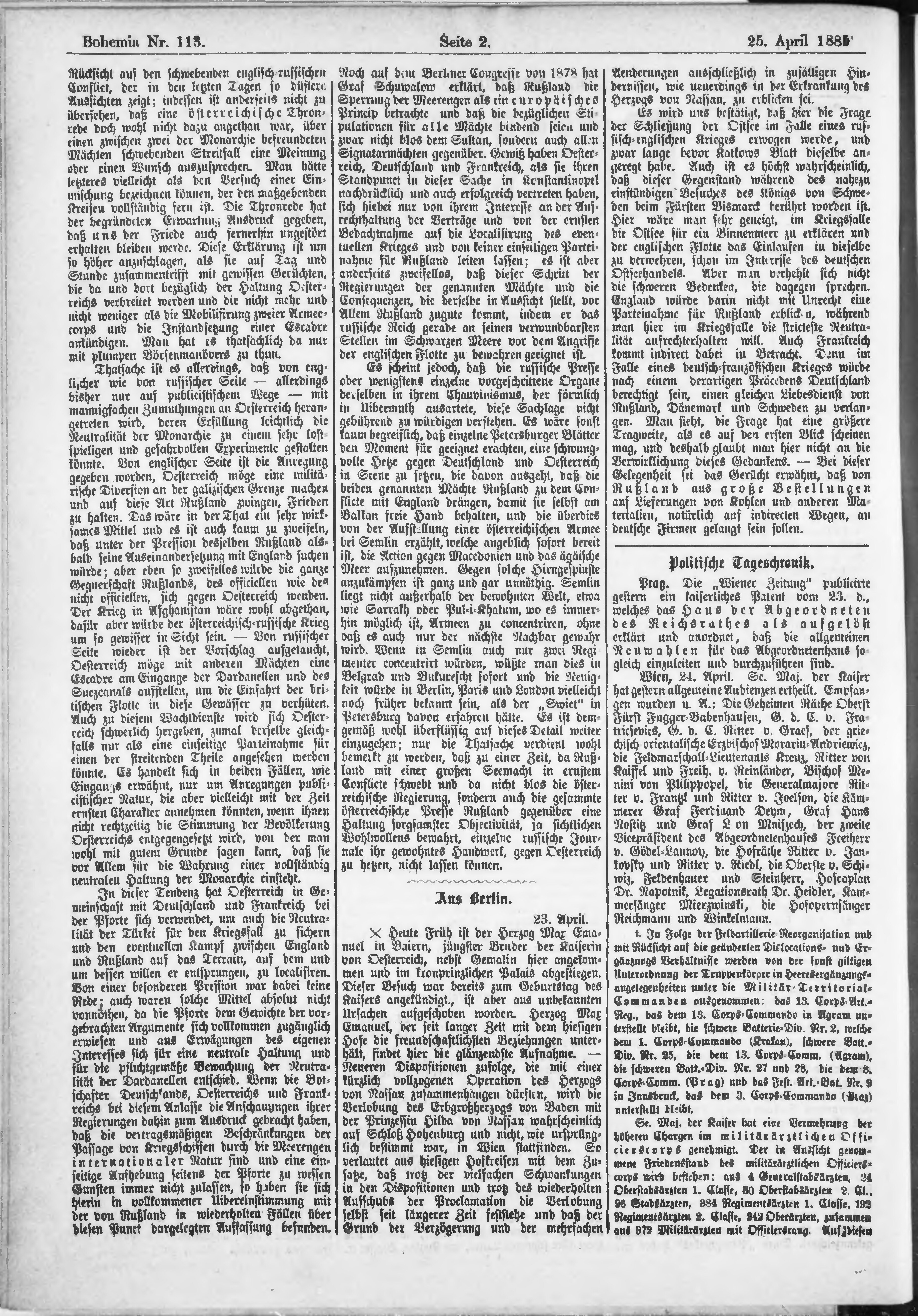 * Datum vydání výtisku: 25.4.1885 Číslo výtisku: 113