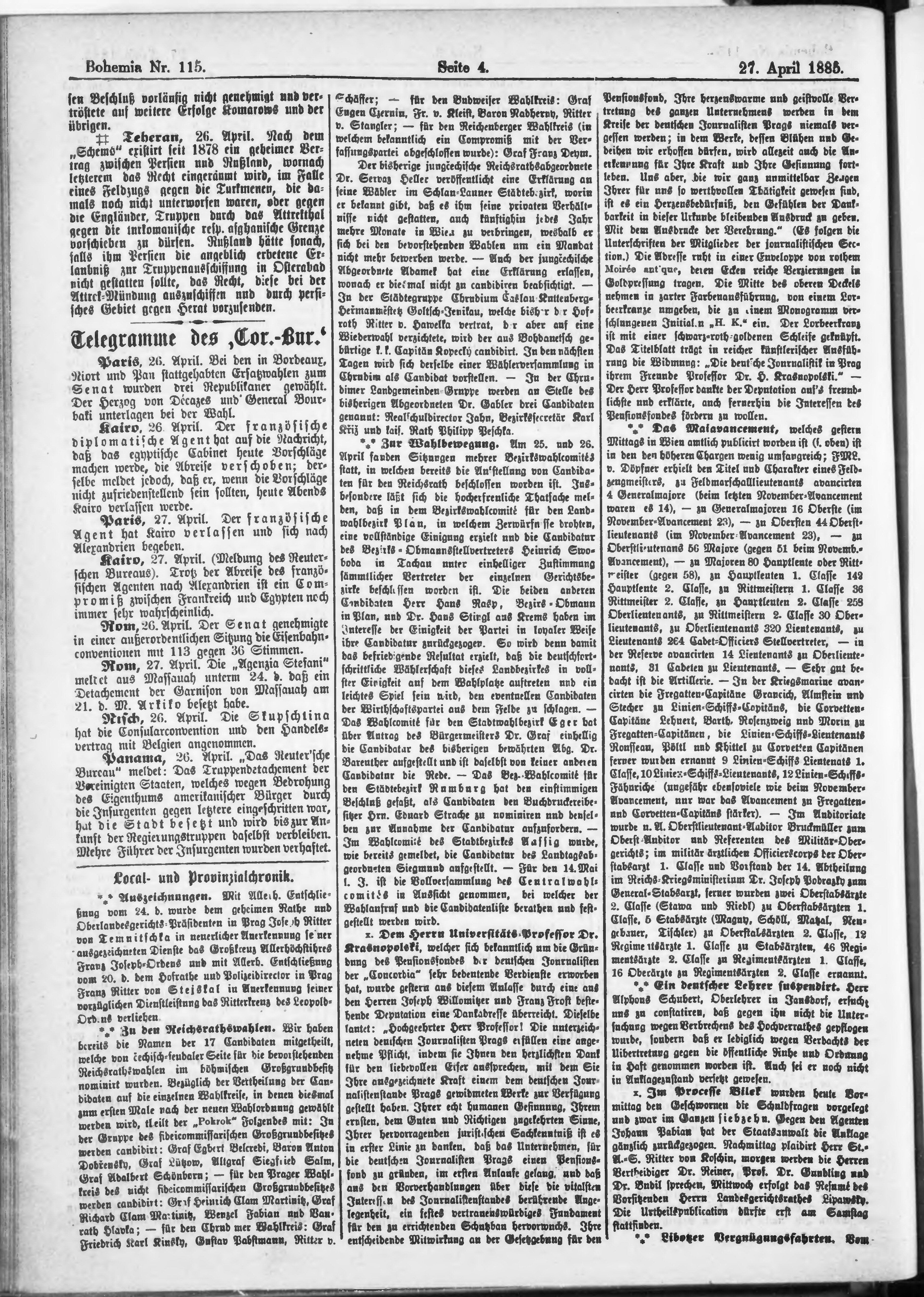 * Datum vydání výtisku: 27.4.1885 Číslo výtisku: 115