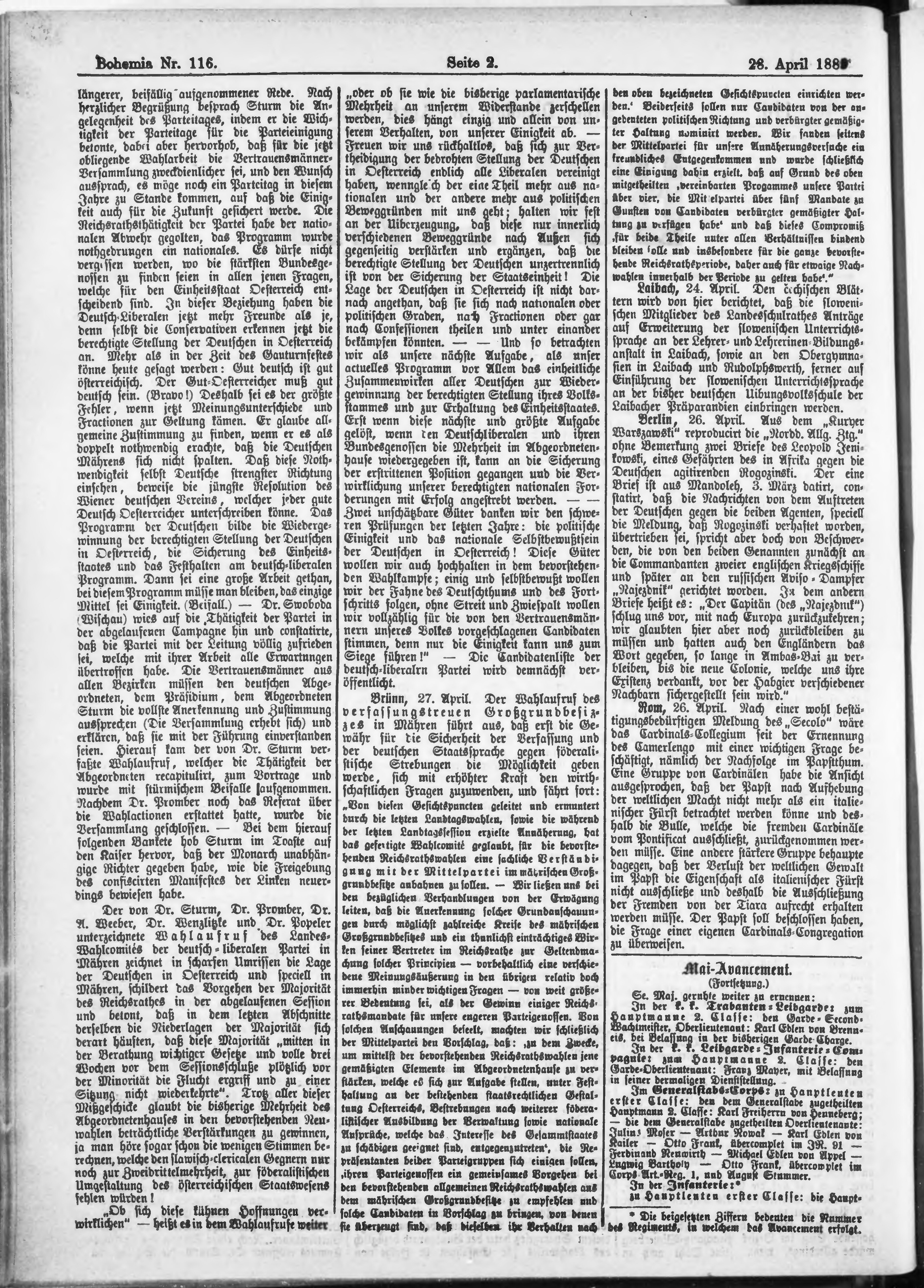 * Datum vydání výtisku: 28.4.1885 Číslo výtisku: 116