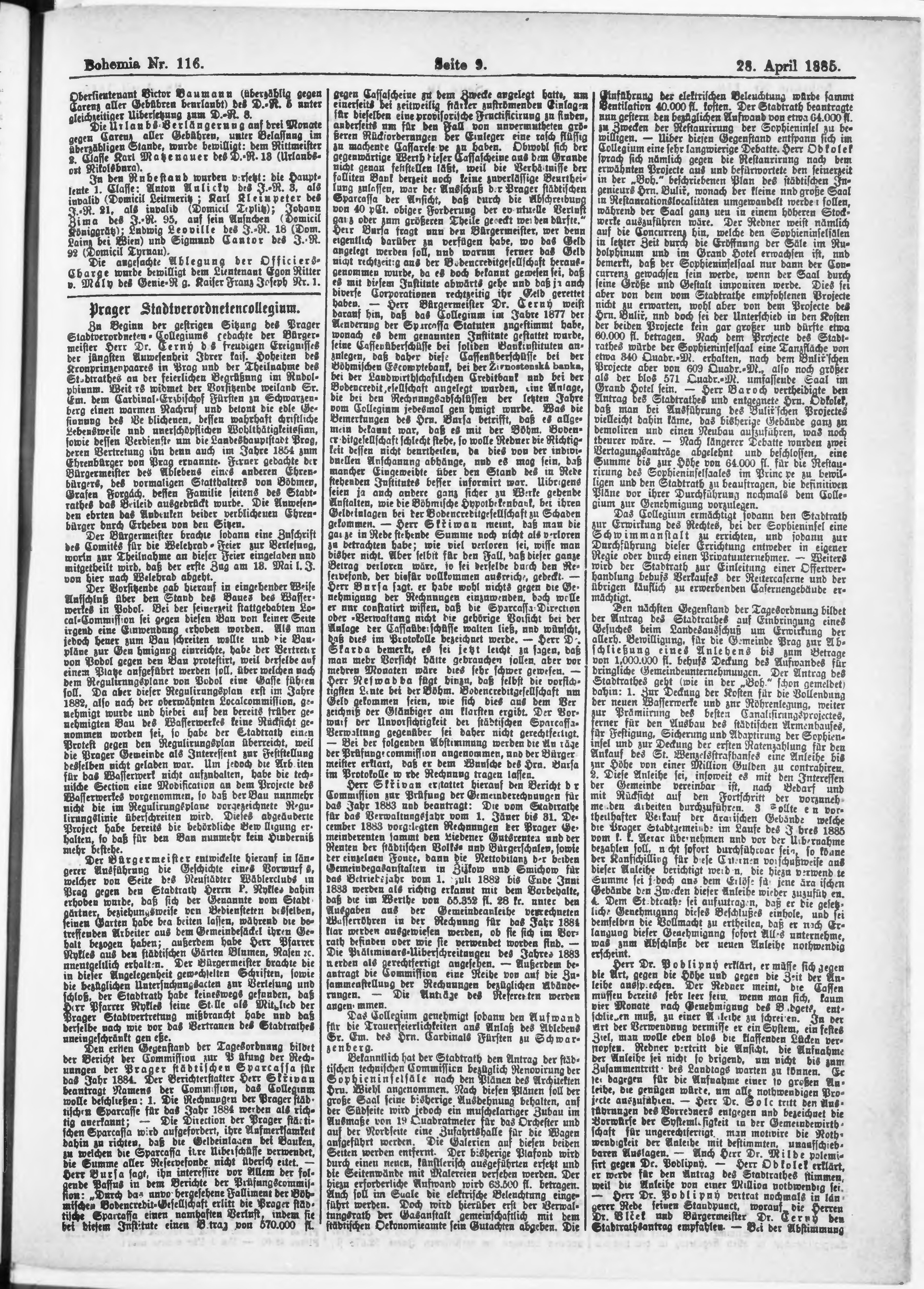 * Datum vydání výtisku: 28.4.1885 Číslo výtisku: 116