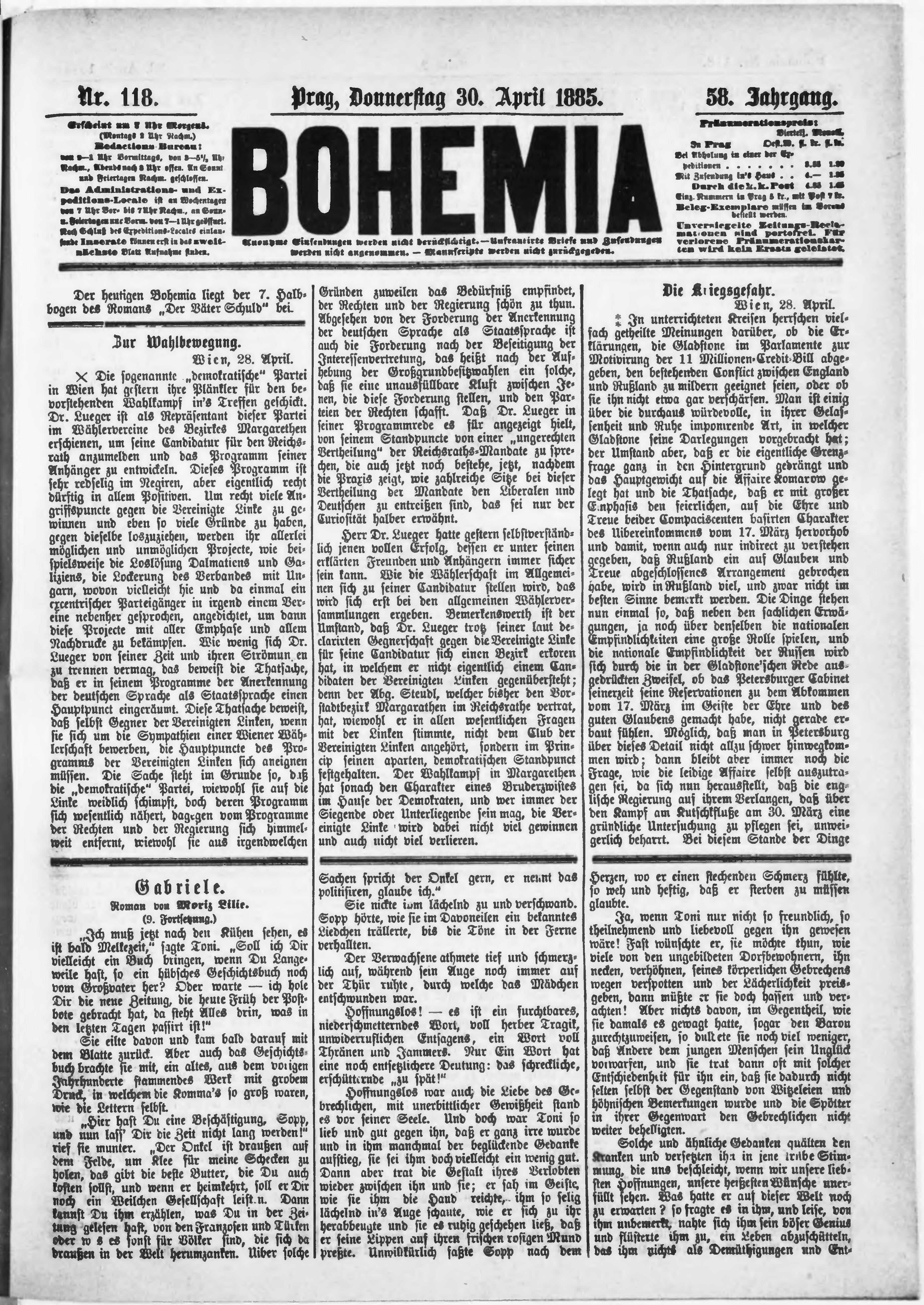* Datum vydání výtisku: 30.4.1885 Číslo výtisku: 118