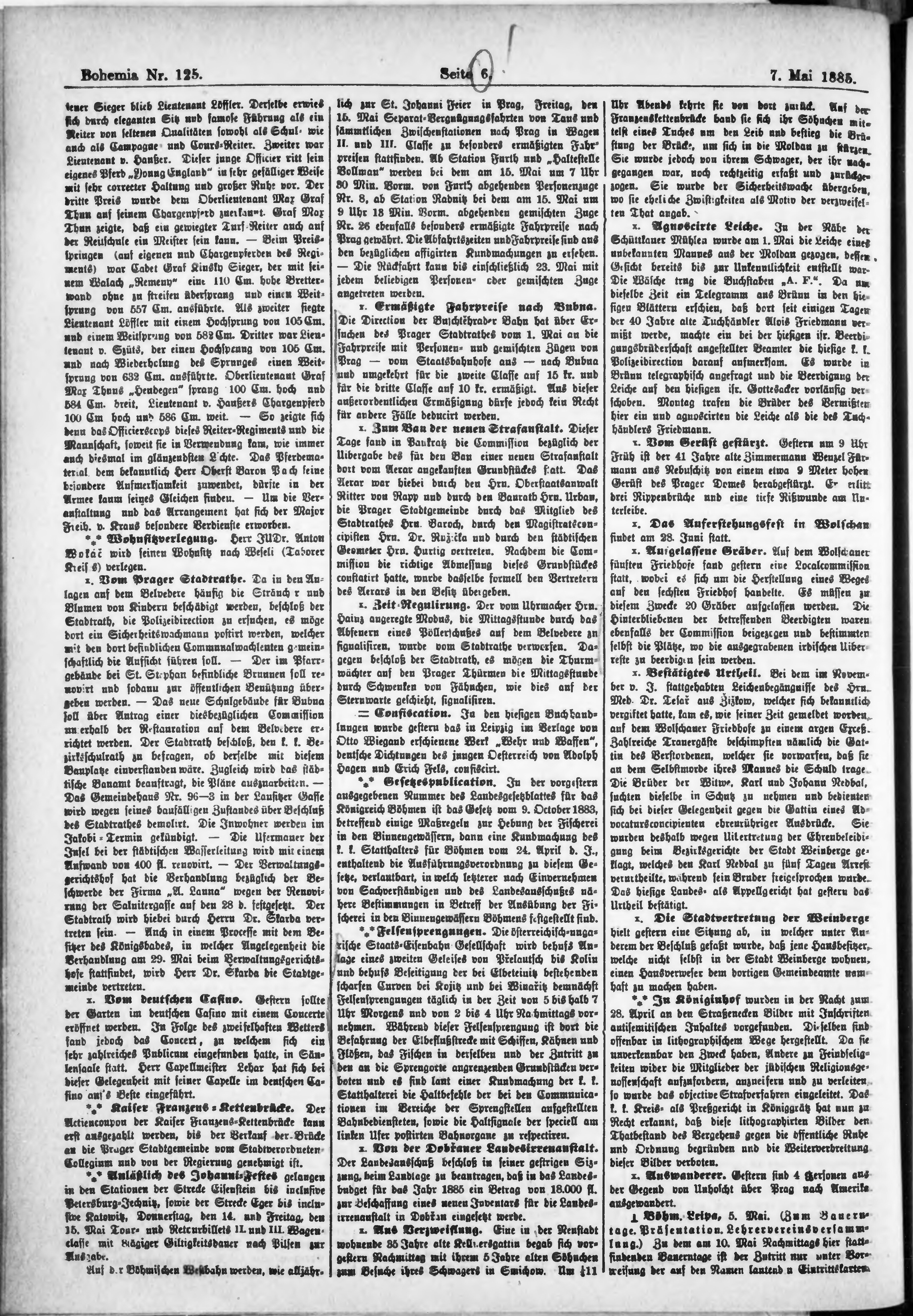 * Datum vydání výtisku: 7.5.1885 Číslo výtisku: 125