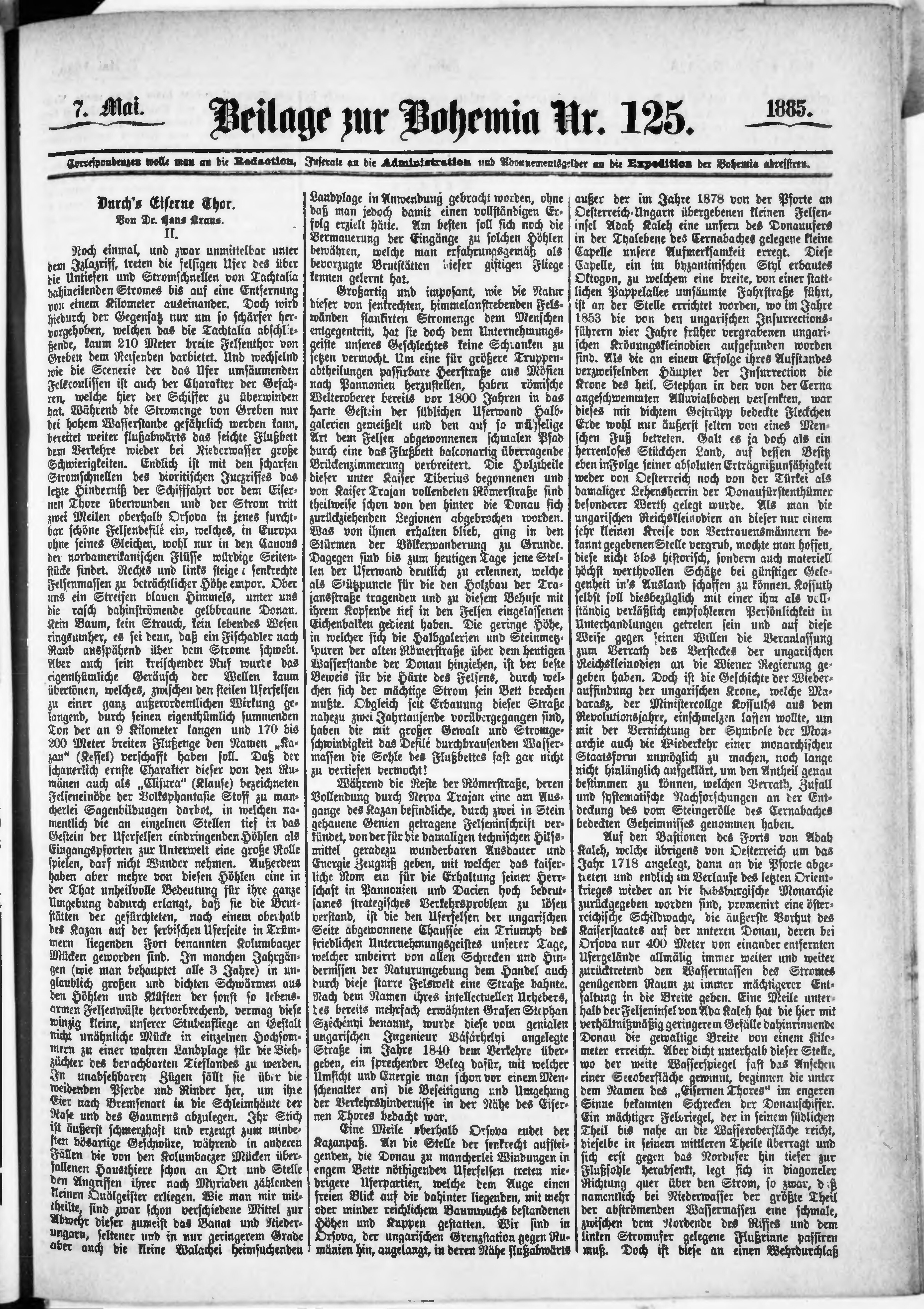 * Datum vydání výtisku: 7.5.1885 Číslo výtisku: 125 Typ výtisku: příloha Poznámky k výtisku: příloha