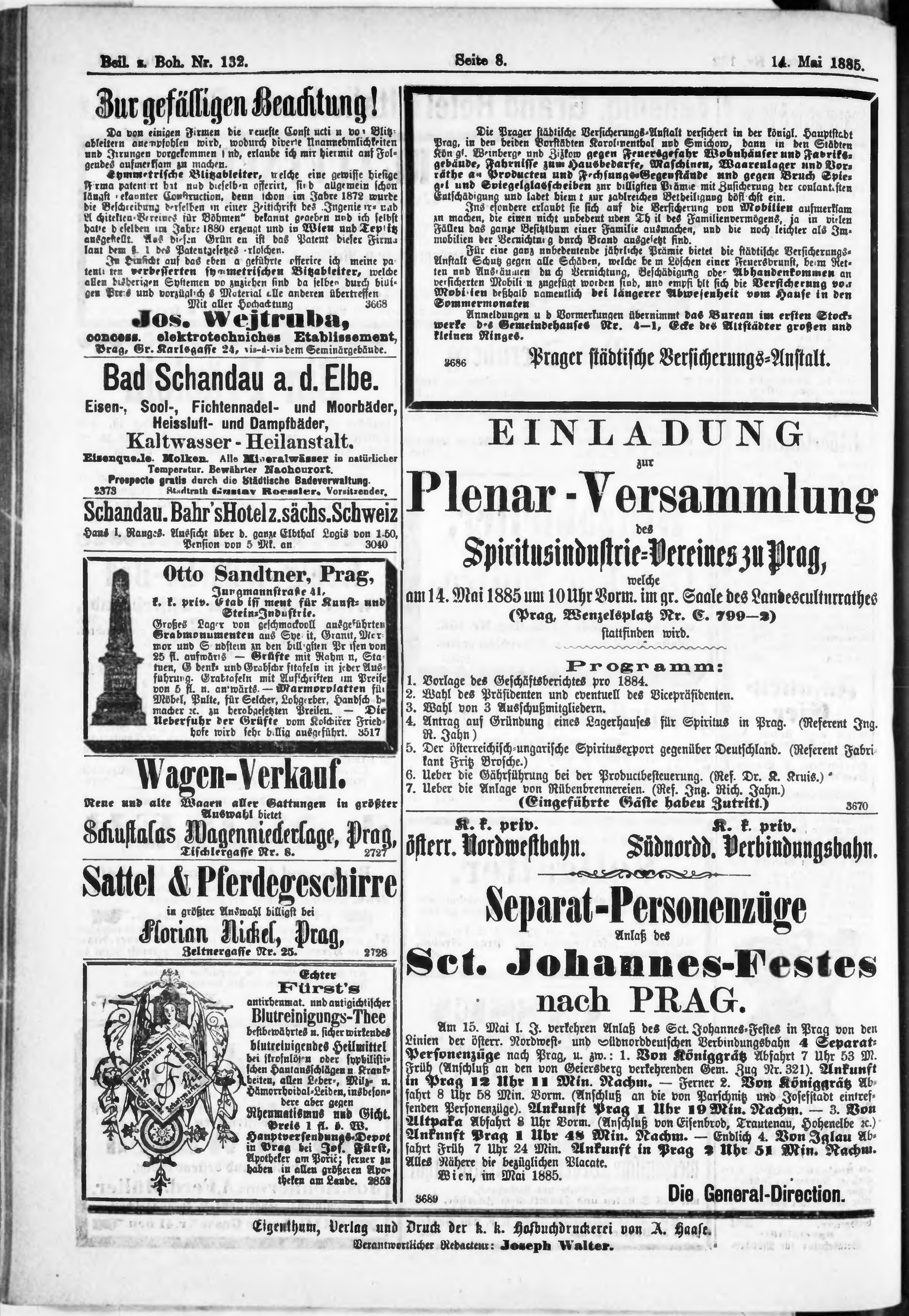 * Datum vydání výtisku: 14.5.1885 Číslo výtisku: 132 Typ výtisku: příloha Poznámky k výtisku: příloha