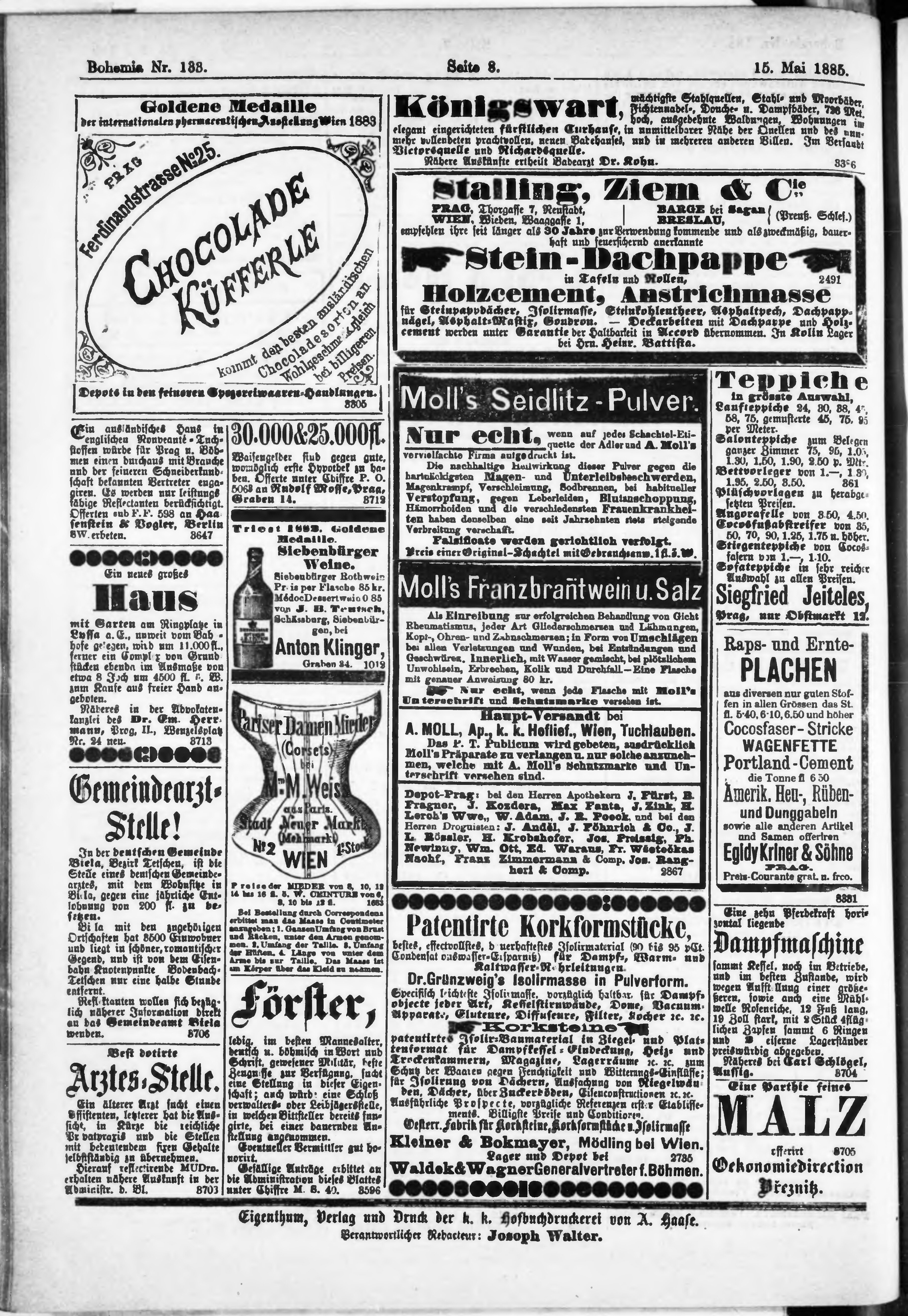 * Datum vydání výtisku: 15.5.1885 Číslo výtisku: 133