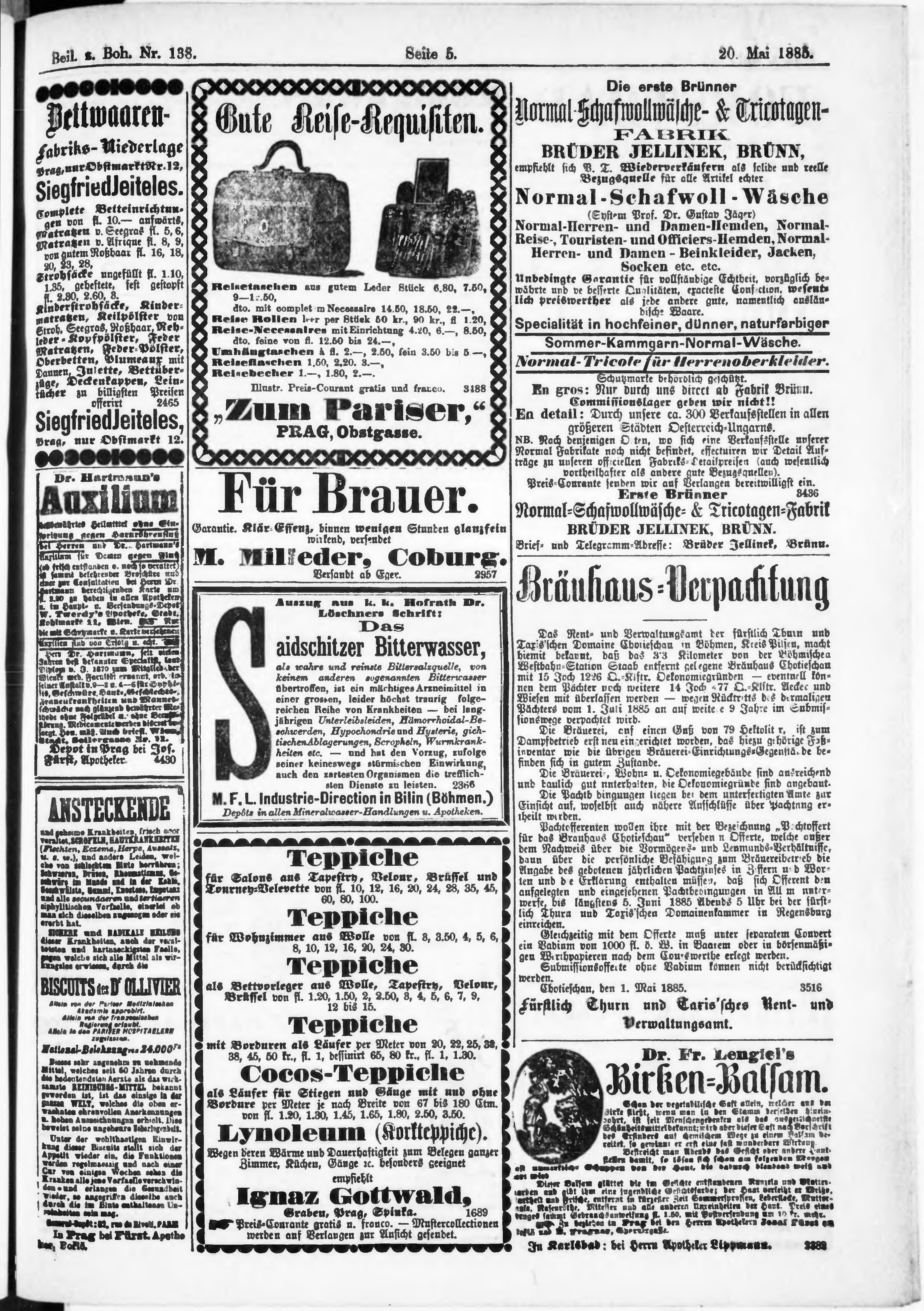 * Datum vydání výtisku: 20.5.1885 Číslo výtisku: 138 Typ výtisku: příloha Poznámky k výtisku: příloha