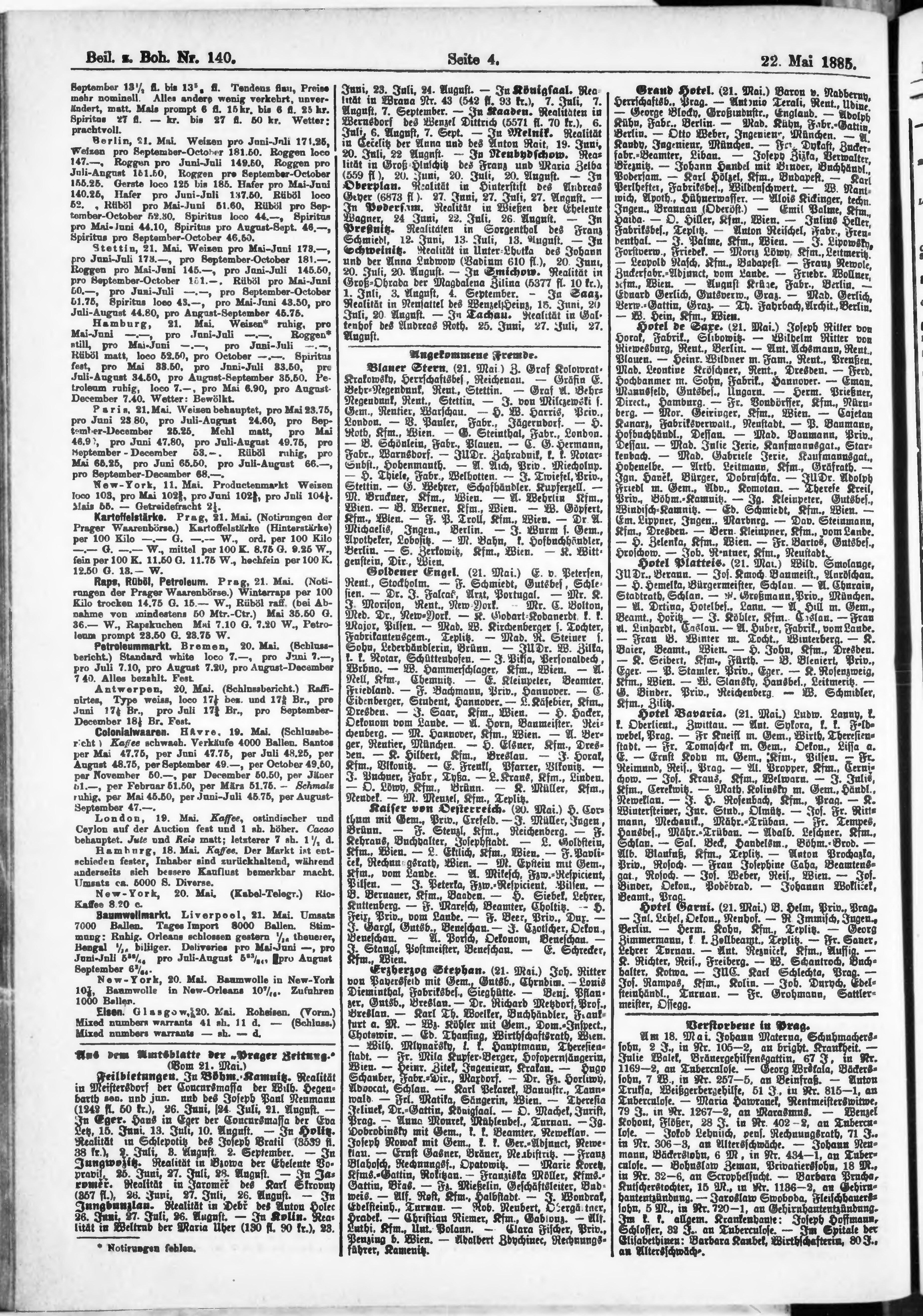 * Datum vydání výtisku: 22.5.1885 Číslo výtisku: 140 Typ výtisku: příloha Poznámky k výtisku: příloha