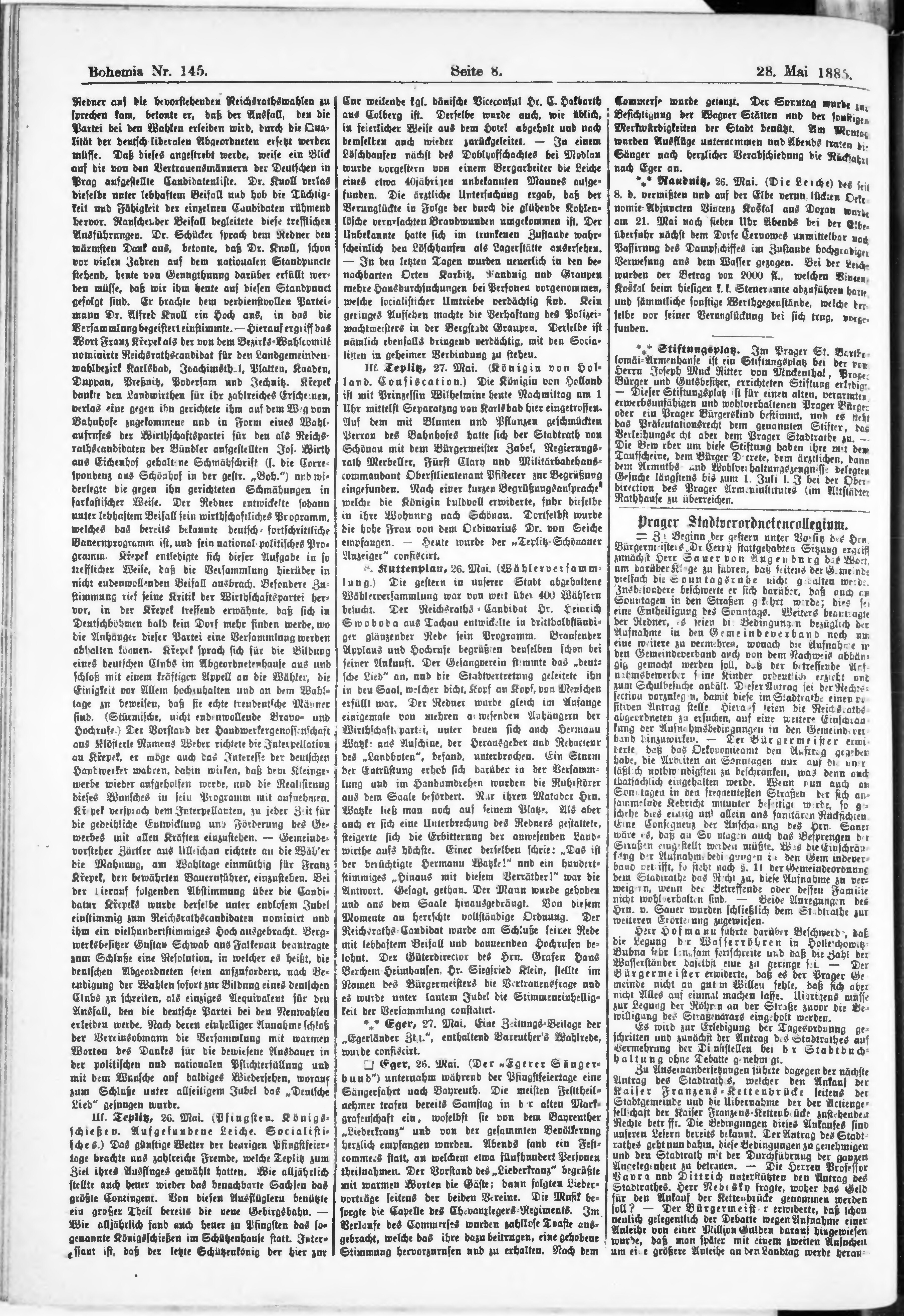 * Datum vydání výtisku: 28.5.1885 Číslo výtisku: 145