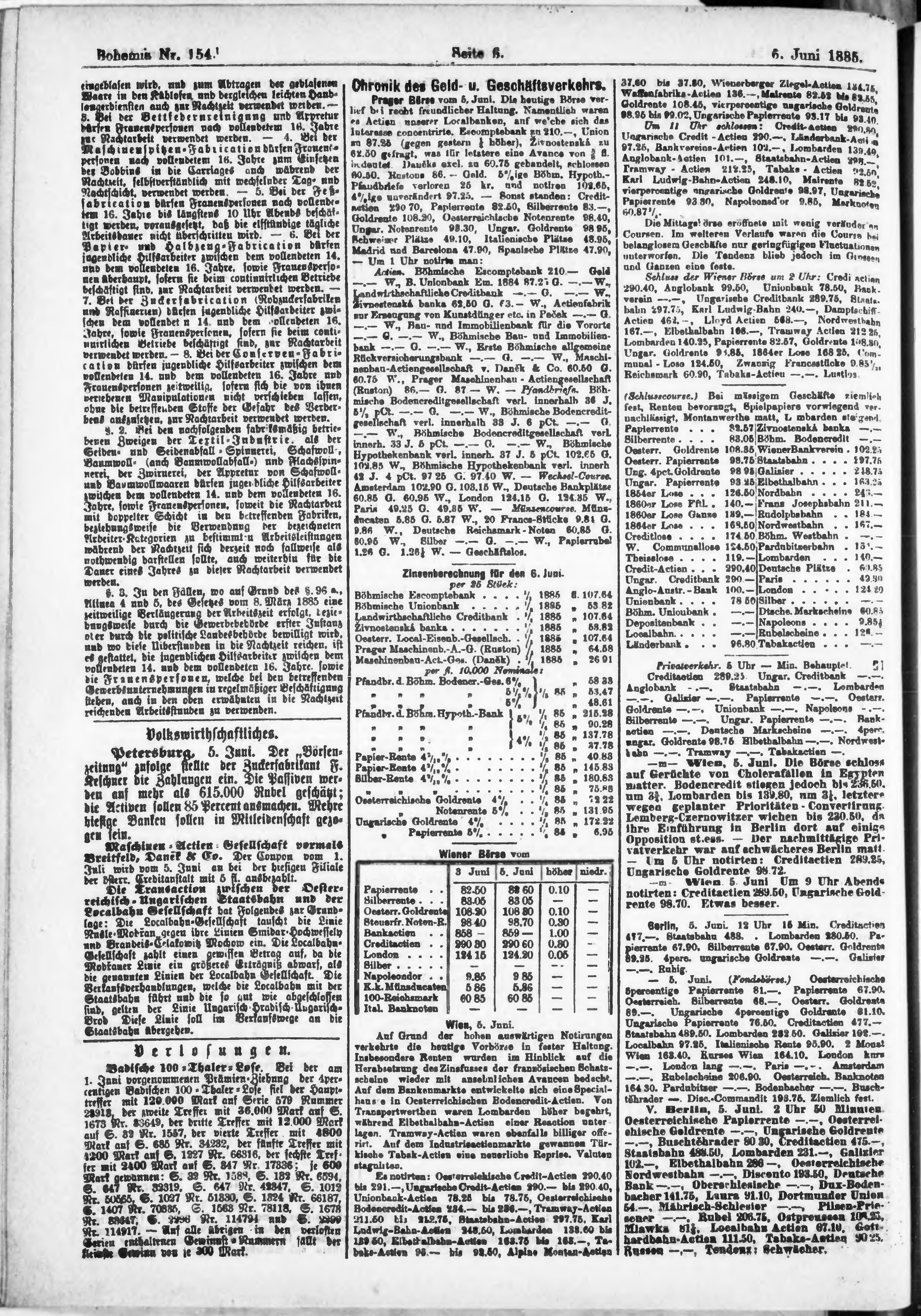 * Datum vydání výtisku: 6.6.1885 Číslo výtisku: 154