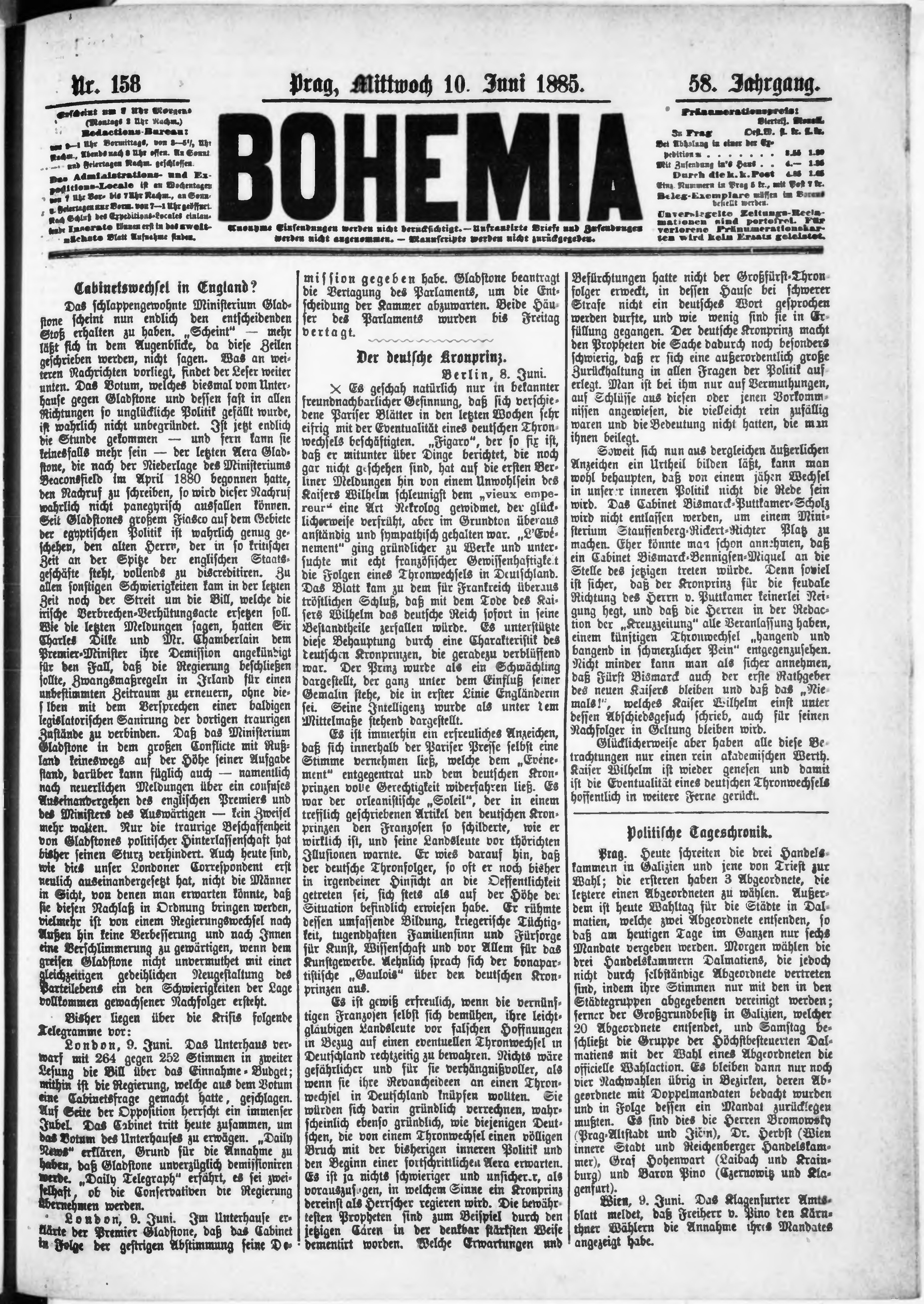* Datum vydání výtisku: 10.6.1885 Číslo výtisku: 158