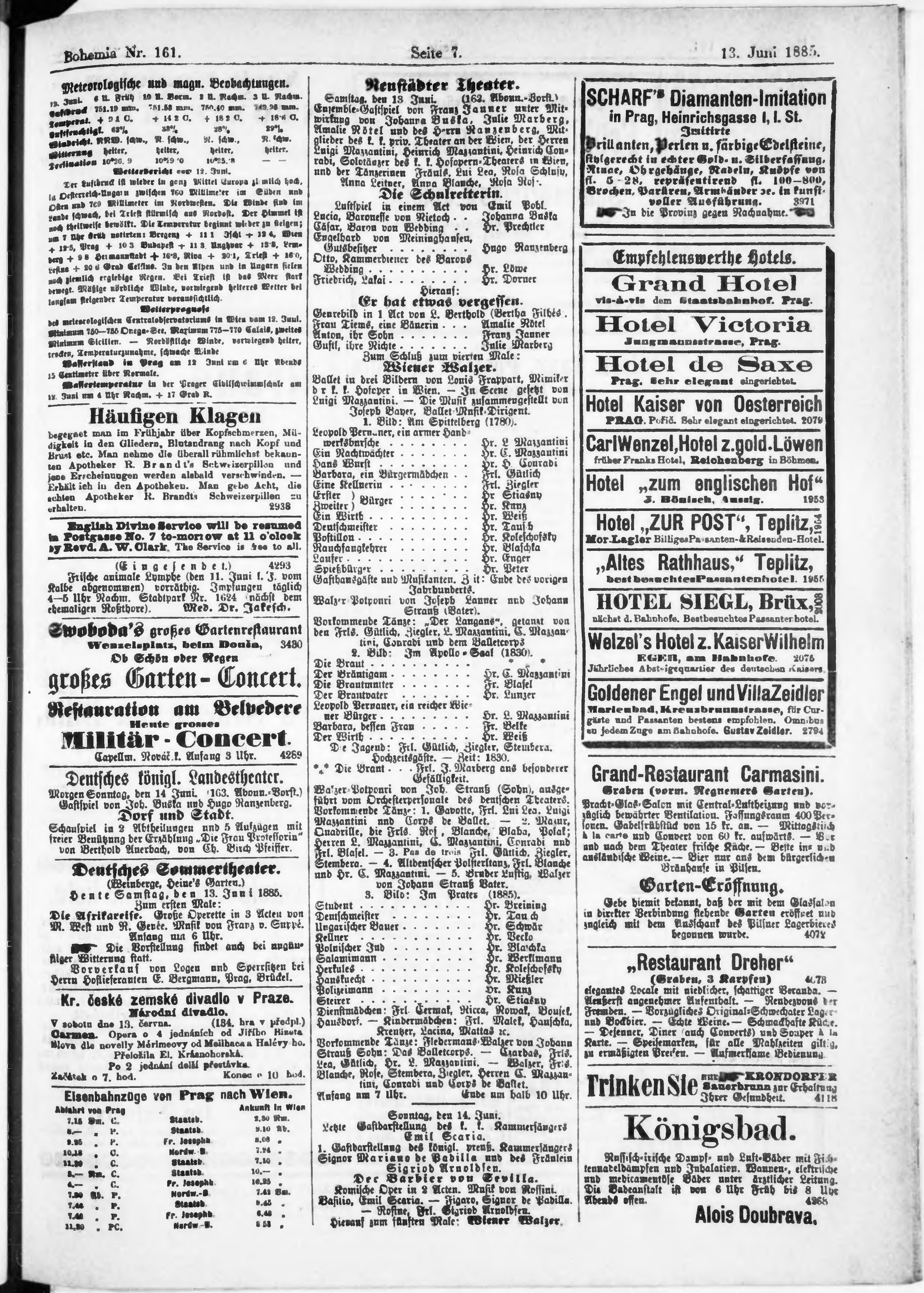 * Datum vydání výtisku: 13.6.1885 Číslo výtisku: 161