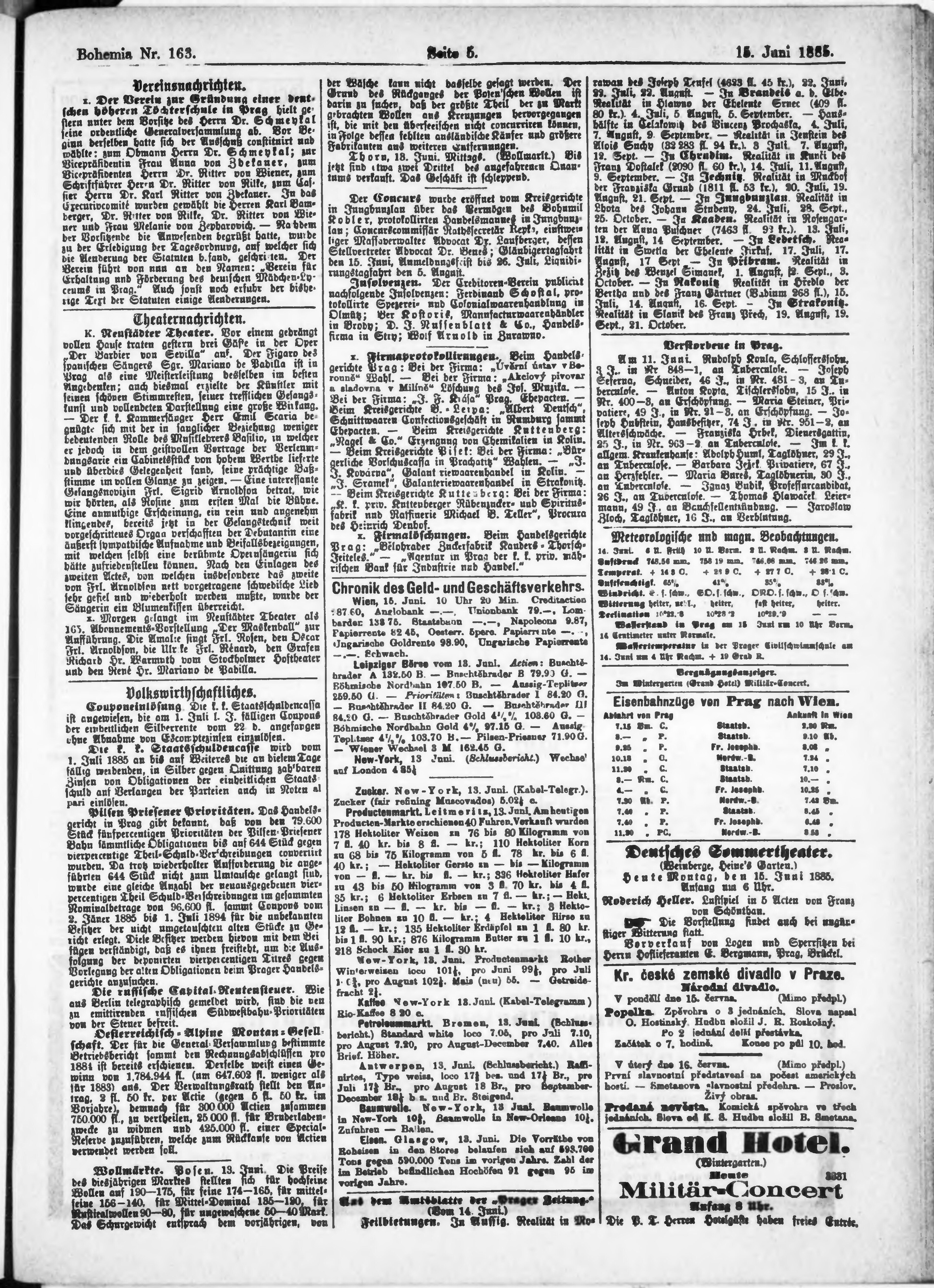 * Datum vydání výtisku: 15.6.1885 Číslo výtisku: 163
