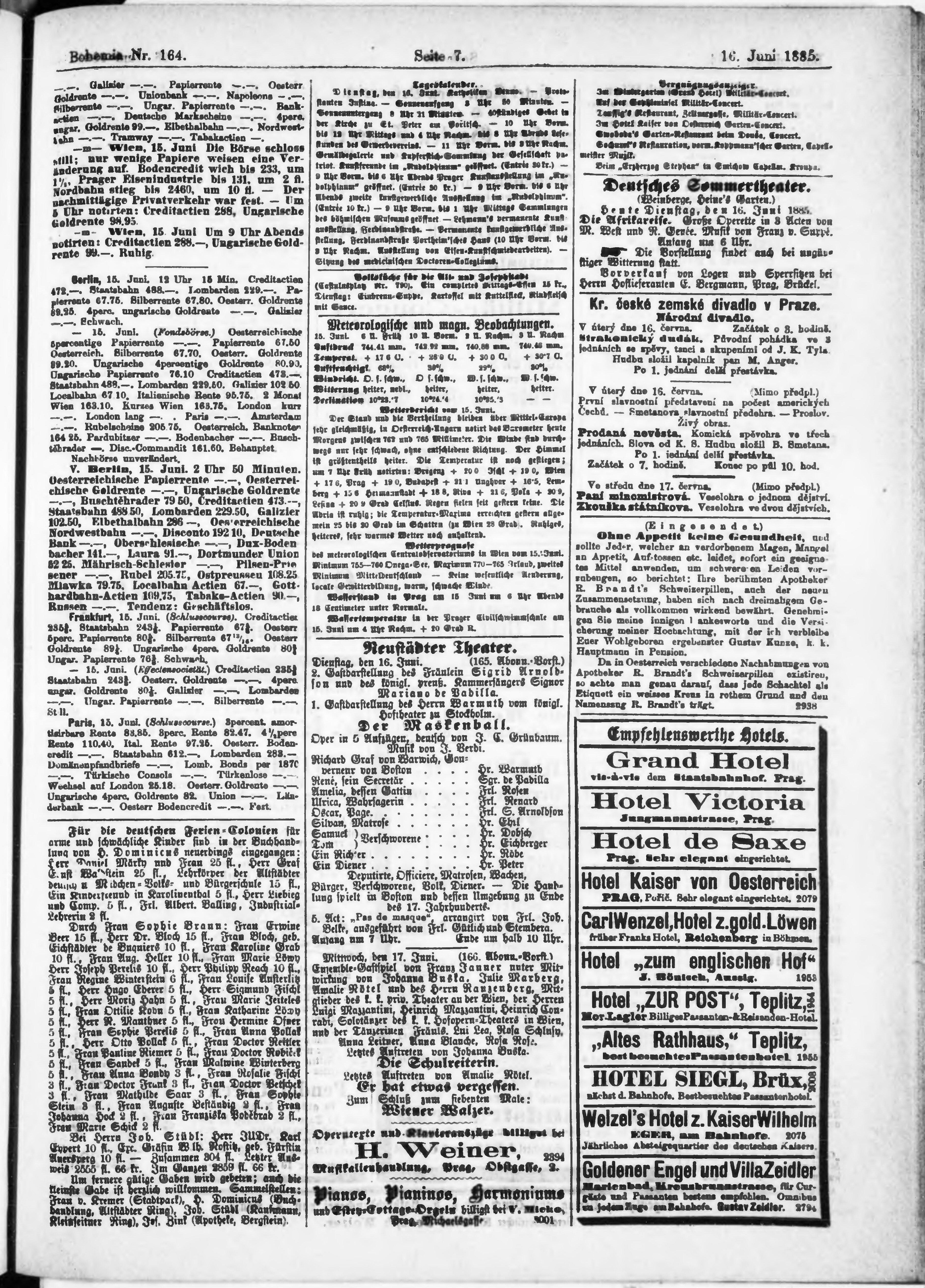 * Datum vydání výtisku: 16.6.1885 Číslo výtisku: 164