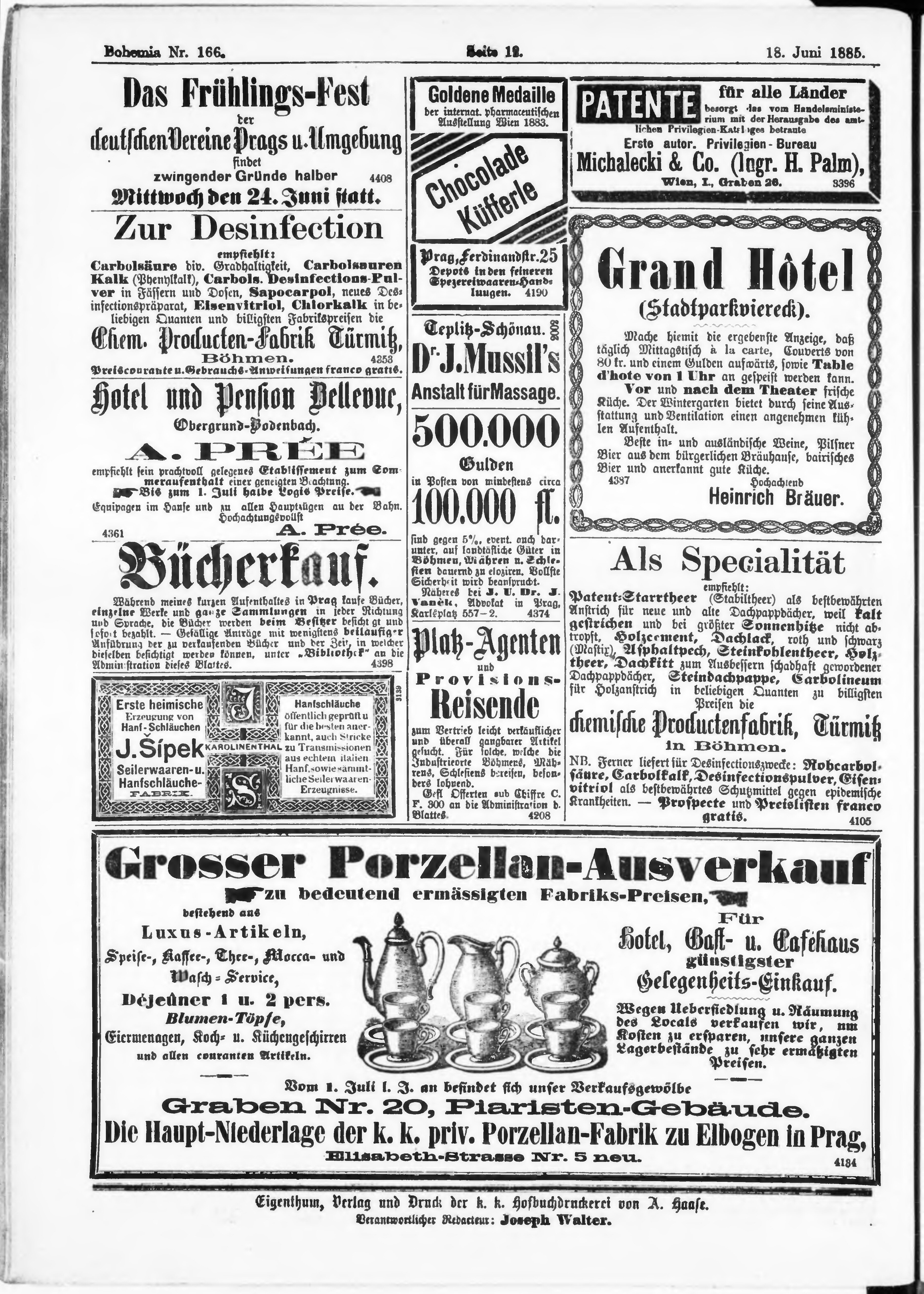* Datum vydání výtisku: 18.6.1885 Číslo výtisku: 166