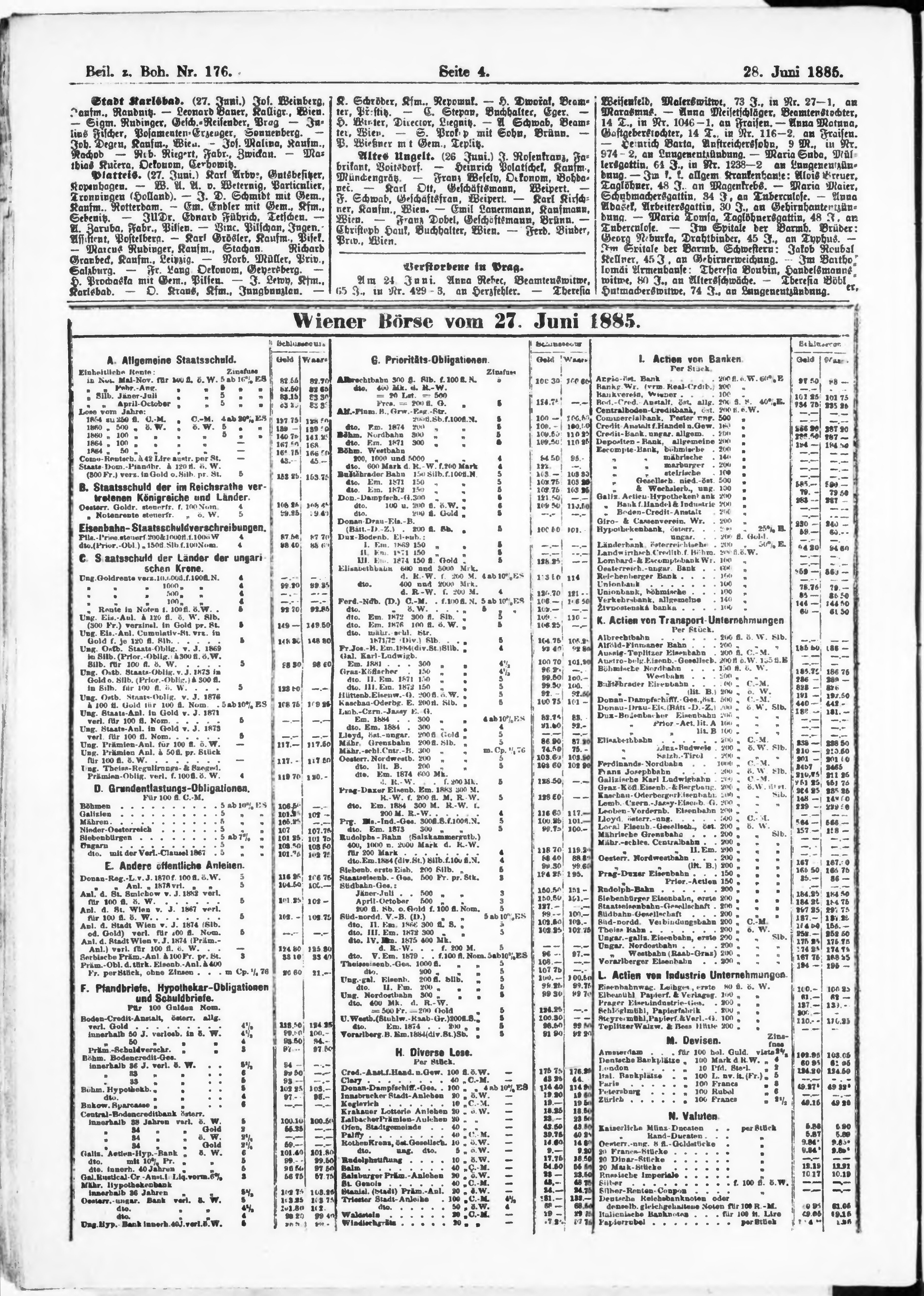 * Datum vydání výtisku: 28.6.1885 Číslo výtisku: 176 Typ výtisku: příloha Poznámky k výtisku: příloha