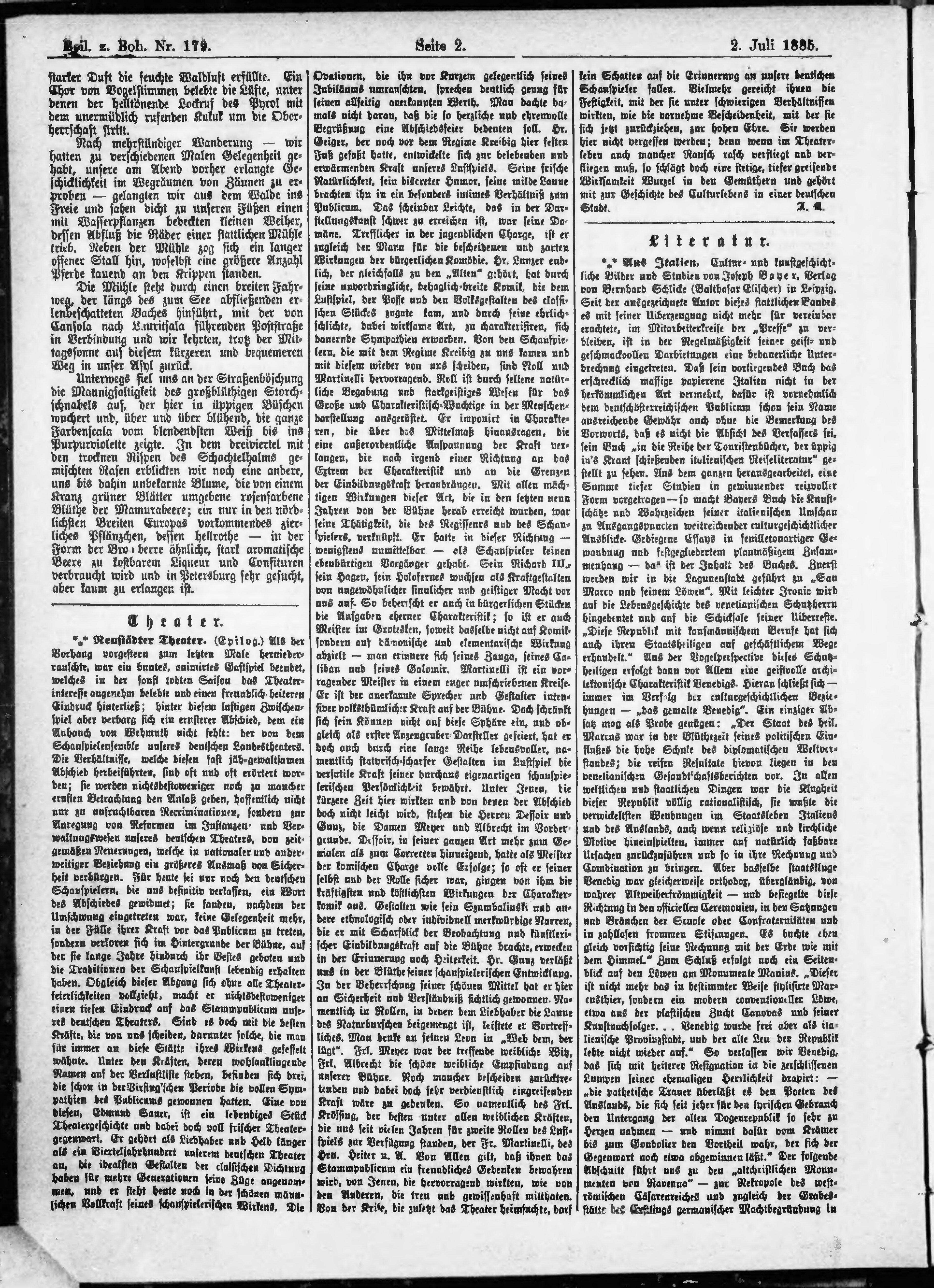 * Datum vydání výtisku: 2.7.1885 Číslo výtisku: 179 Typ výtisku: příloha Poznámky k výtisku: příloha