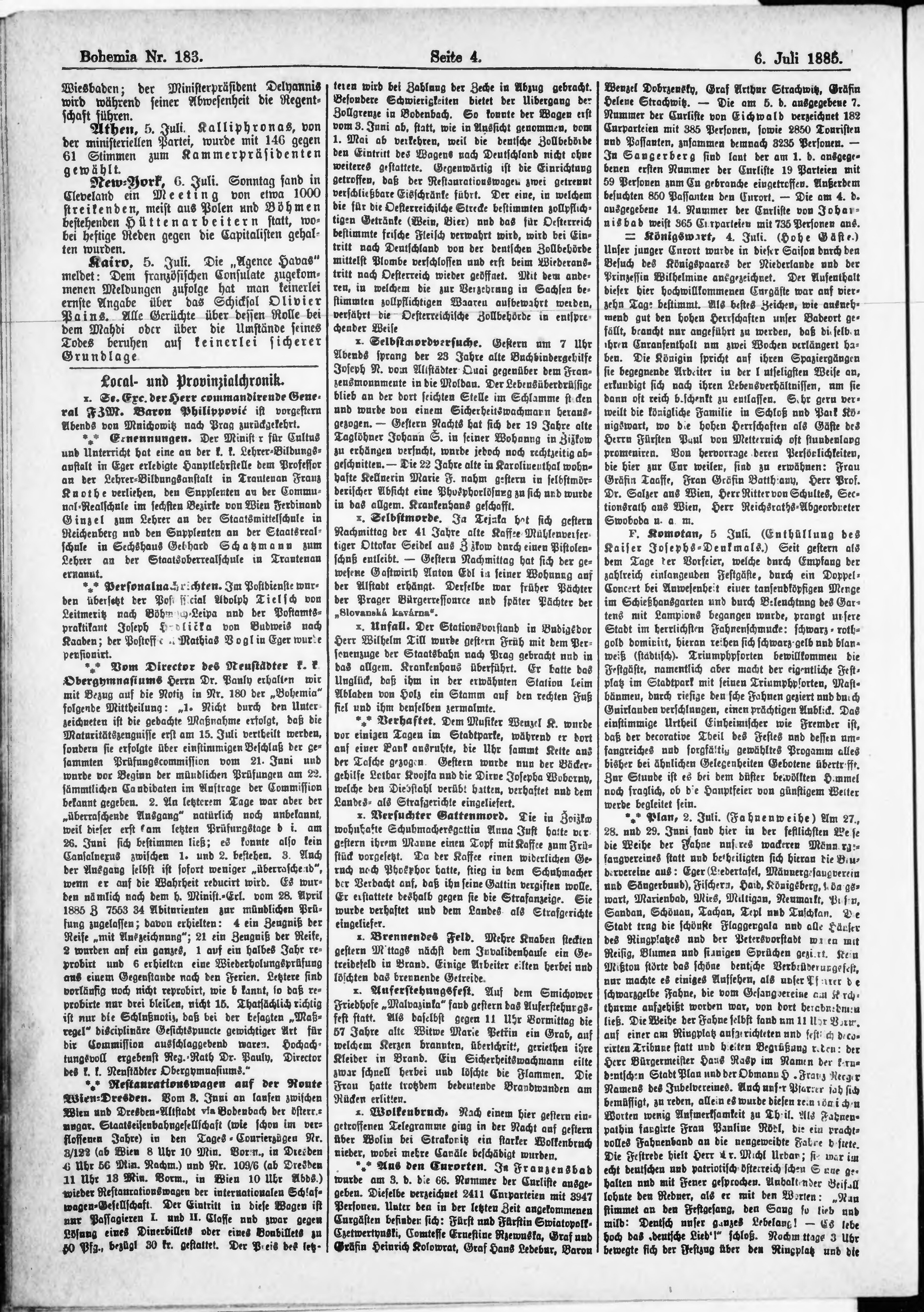 * Datum vydání výtisku: 6.7.1885 Číslo výtisku: 183