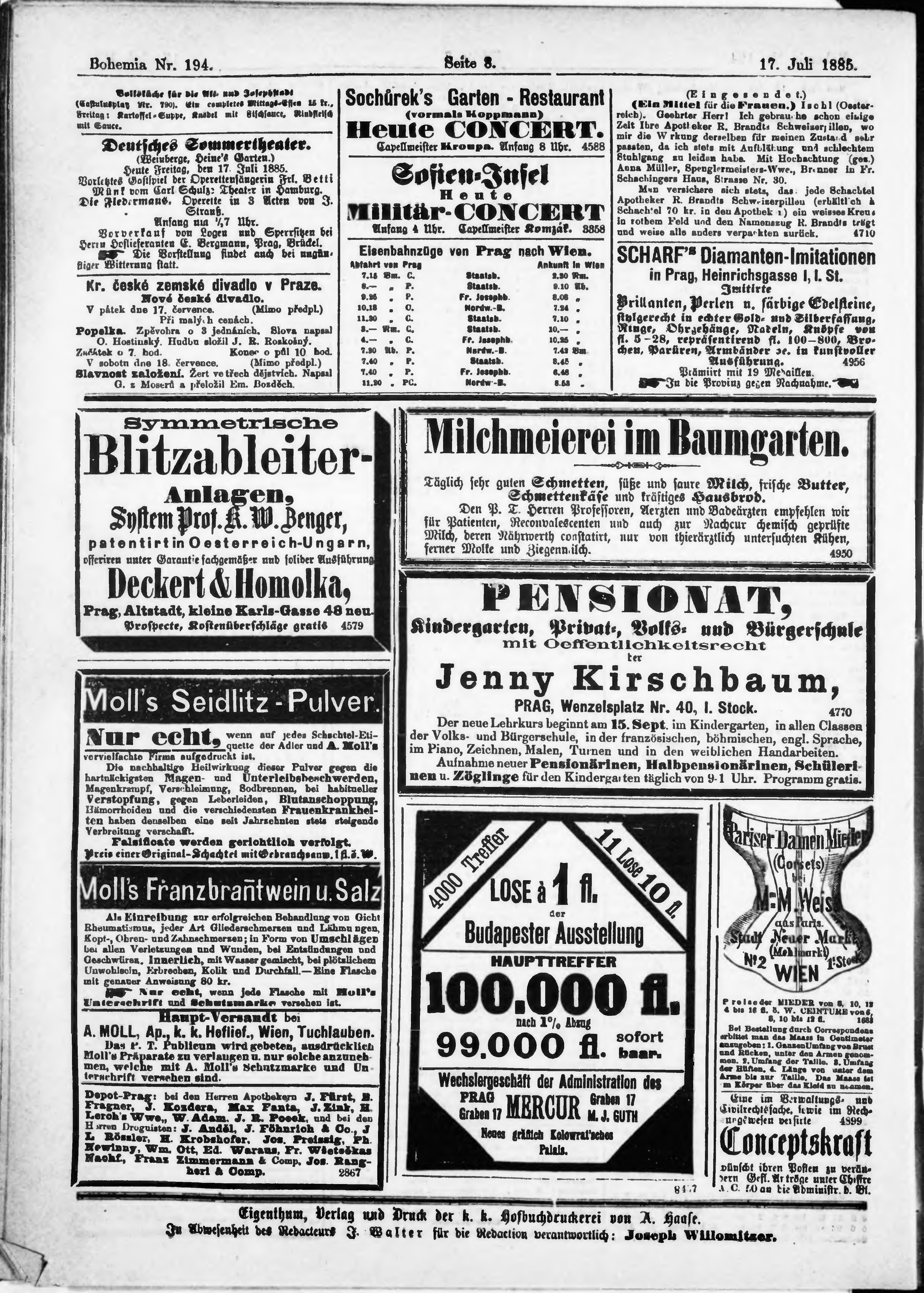 * Datum vydání výtisku: 17.7.1885 Číslo výtisku: 194