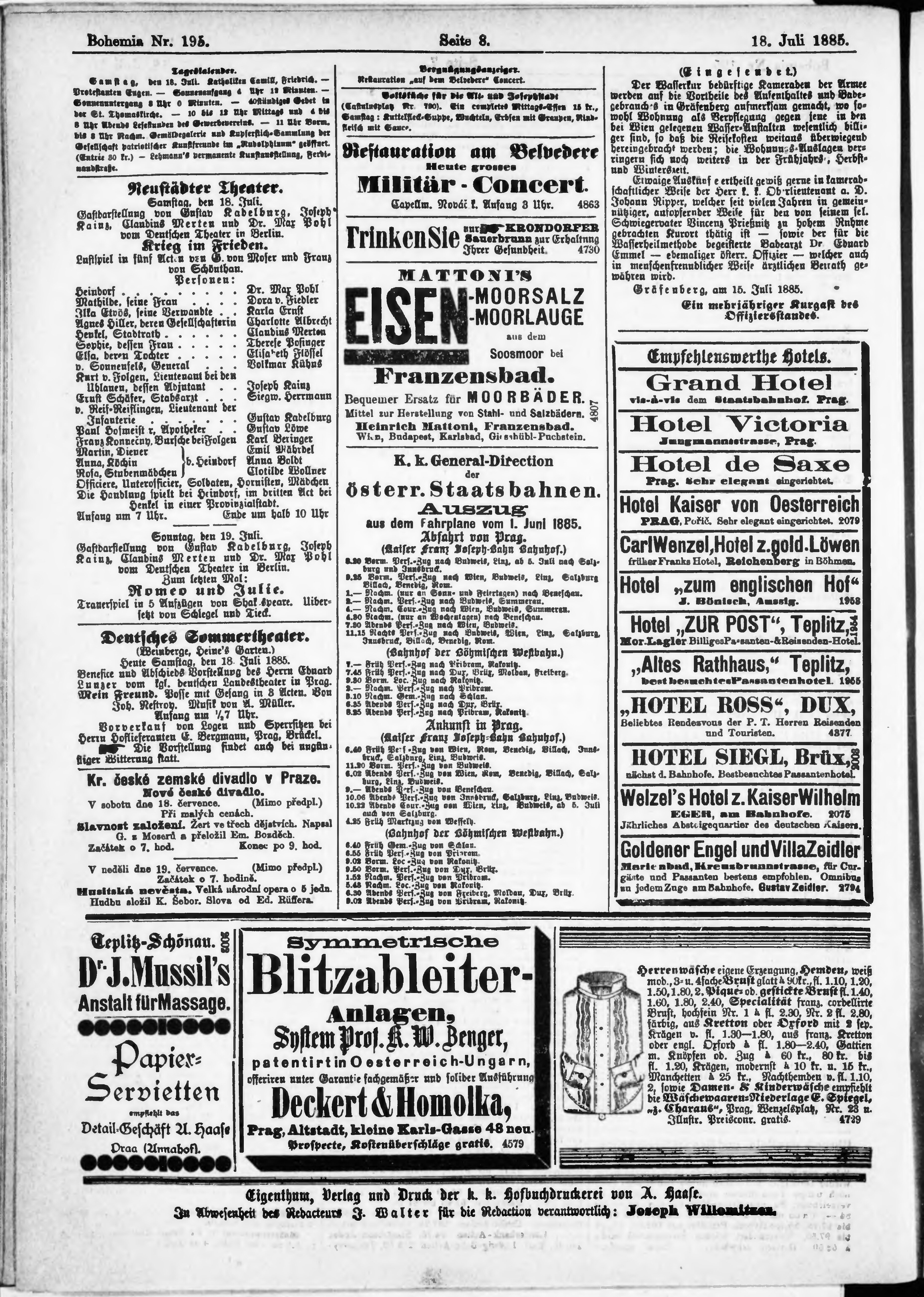 * Datum vydání výtisku: 18.7.1885 Číslo výtisku: 195