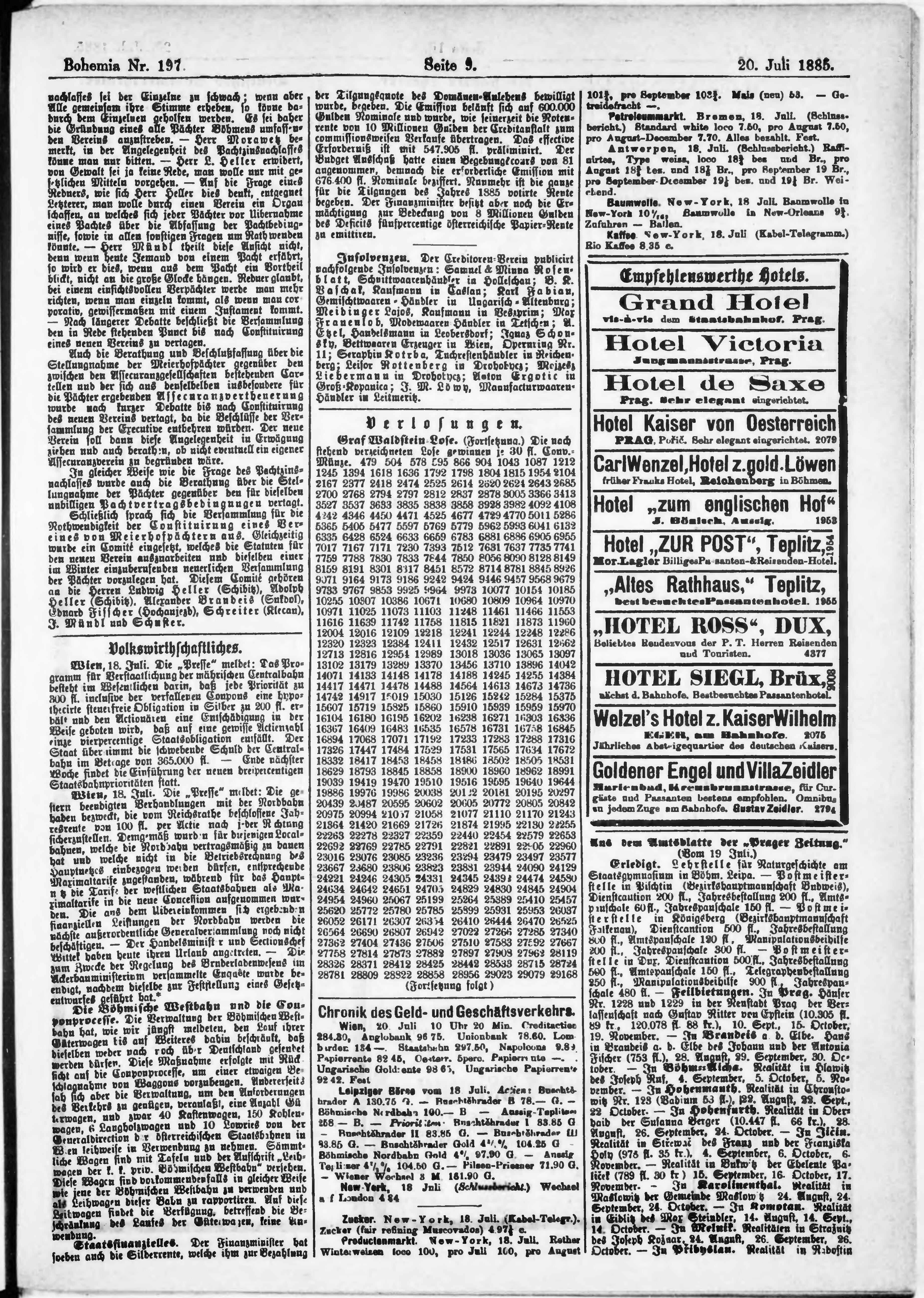 * Datum vydání výtisku: 20.7.1885 Číslo výtisku: 197
