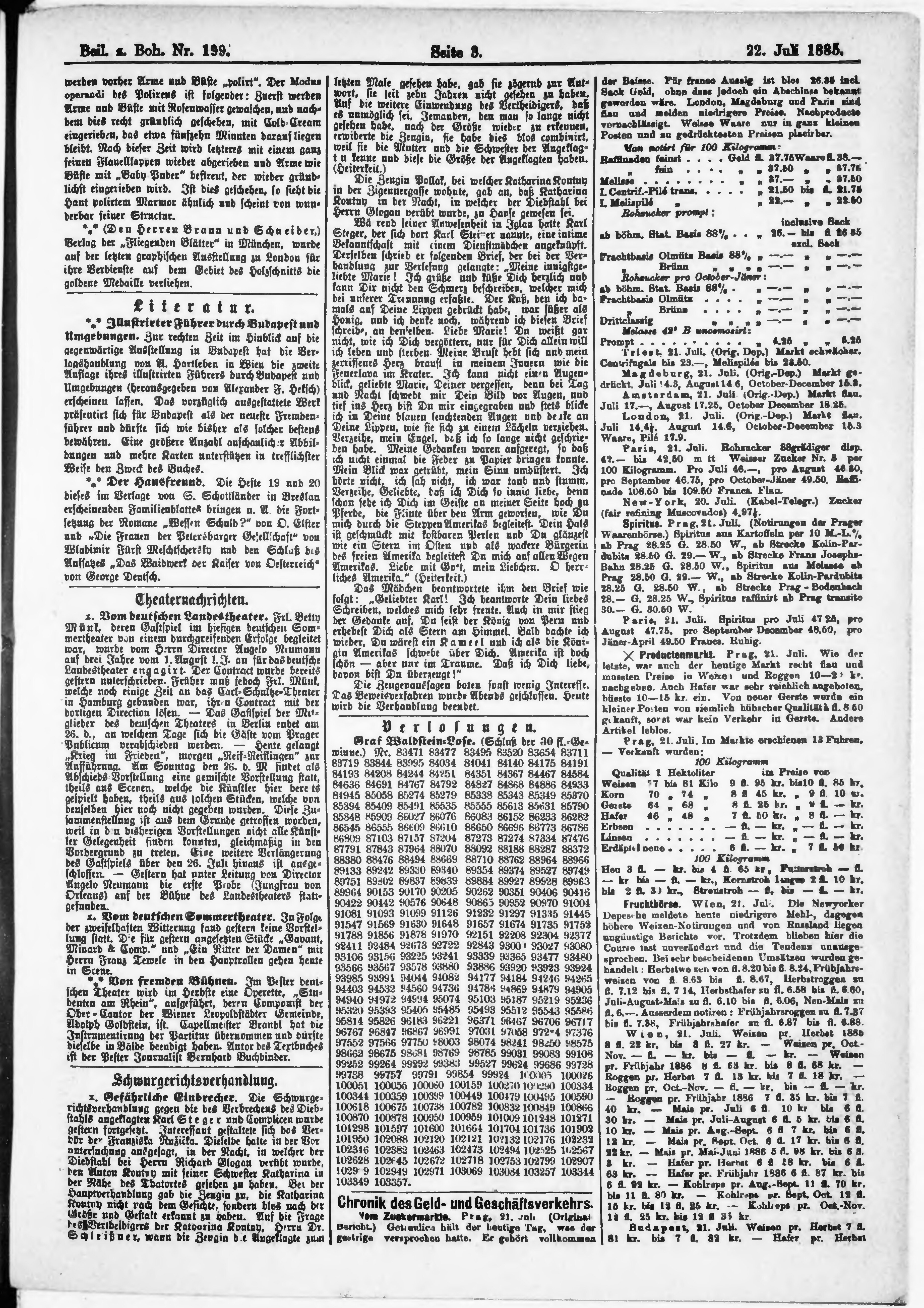 * Datum vydání výtisku: 22.7.1885 Číslo výtisku: 199 Typ výtisku: příloha Poznámky k výtisku: příloha