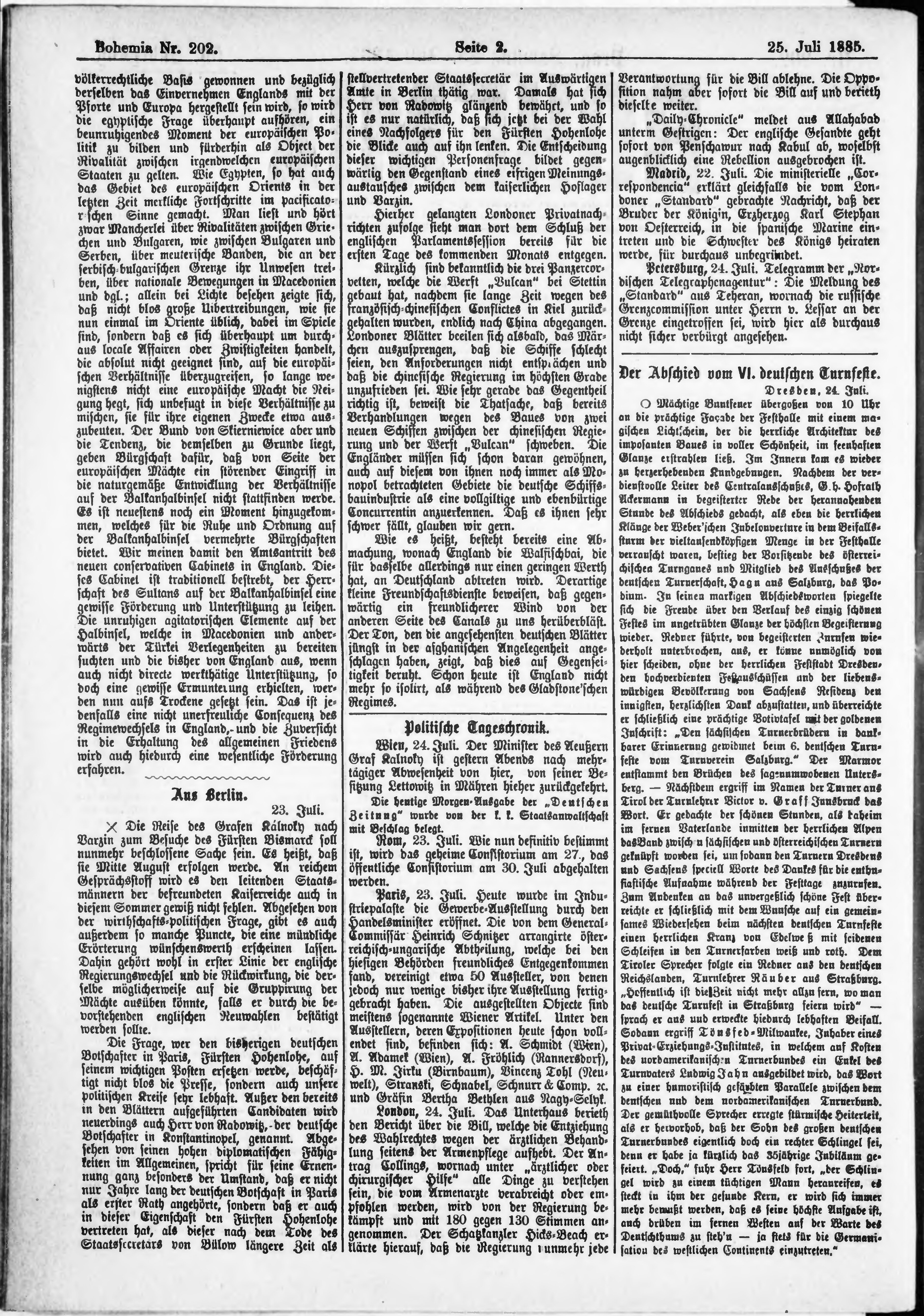 * Datum vydání výtisku: 25.7.1885 Číslo výtisku: 202