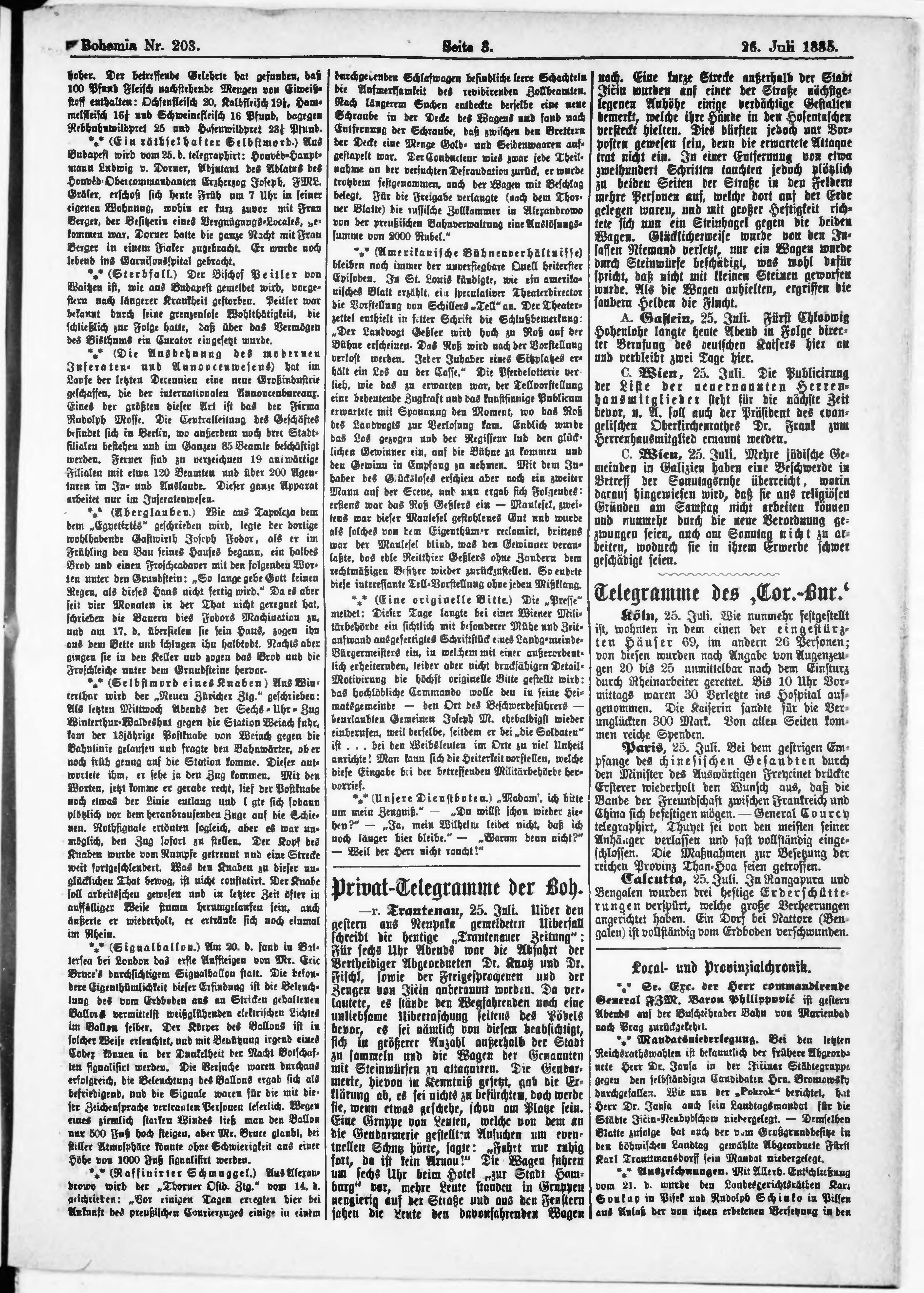 * Datum vydání výtisku: 26.7.1885 Číslo výtisku: 203