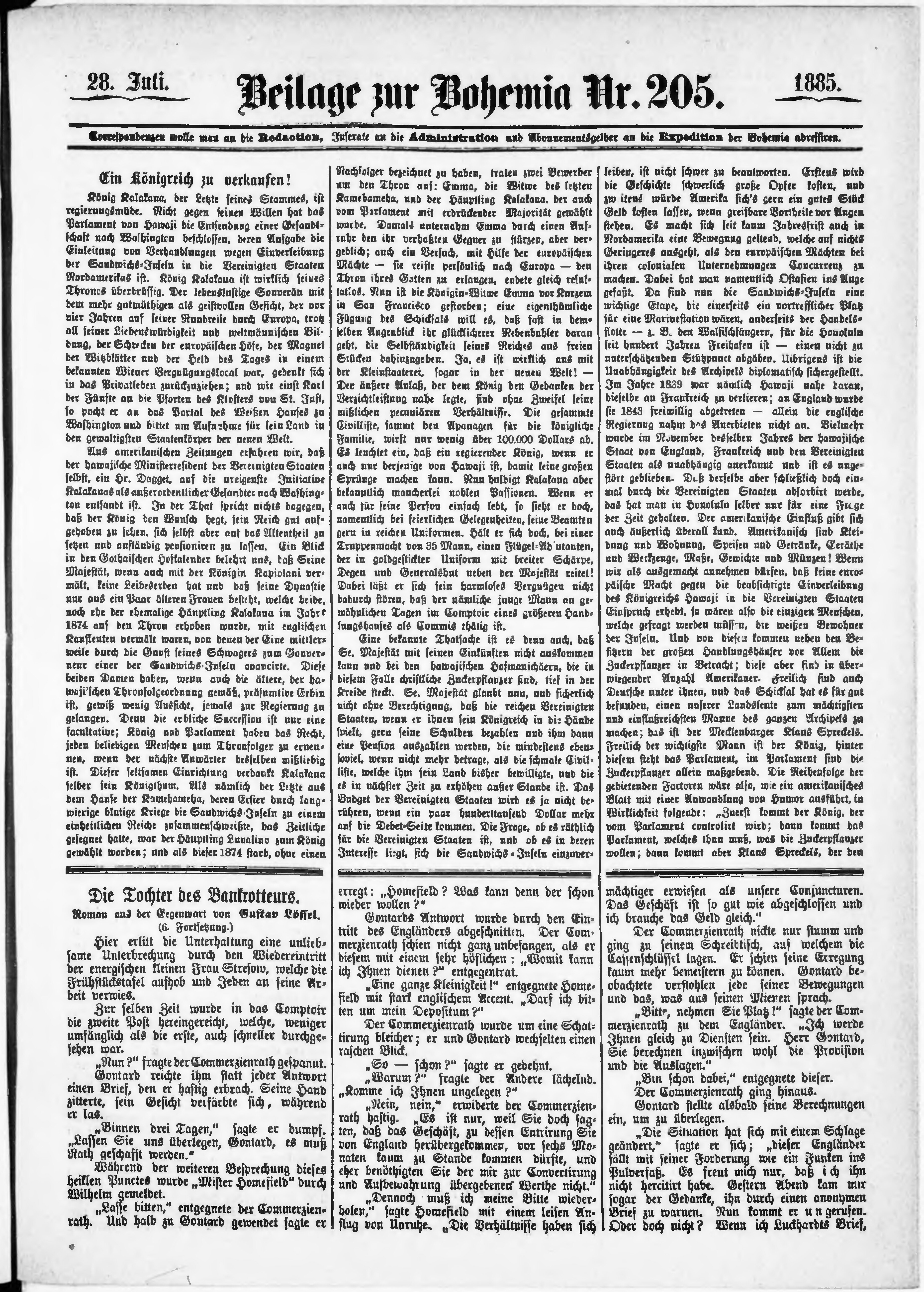 * Datum vydání výtisku: 28.7.1885 Číslo výtisku: 205 Typ výtisku: příloha Poznámky k výtisku: příloha