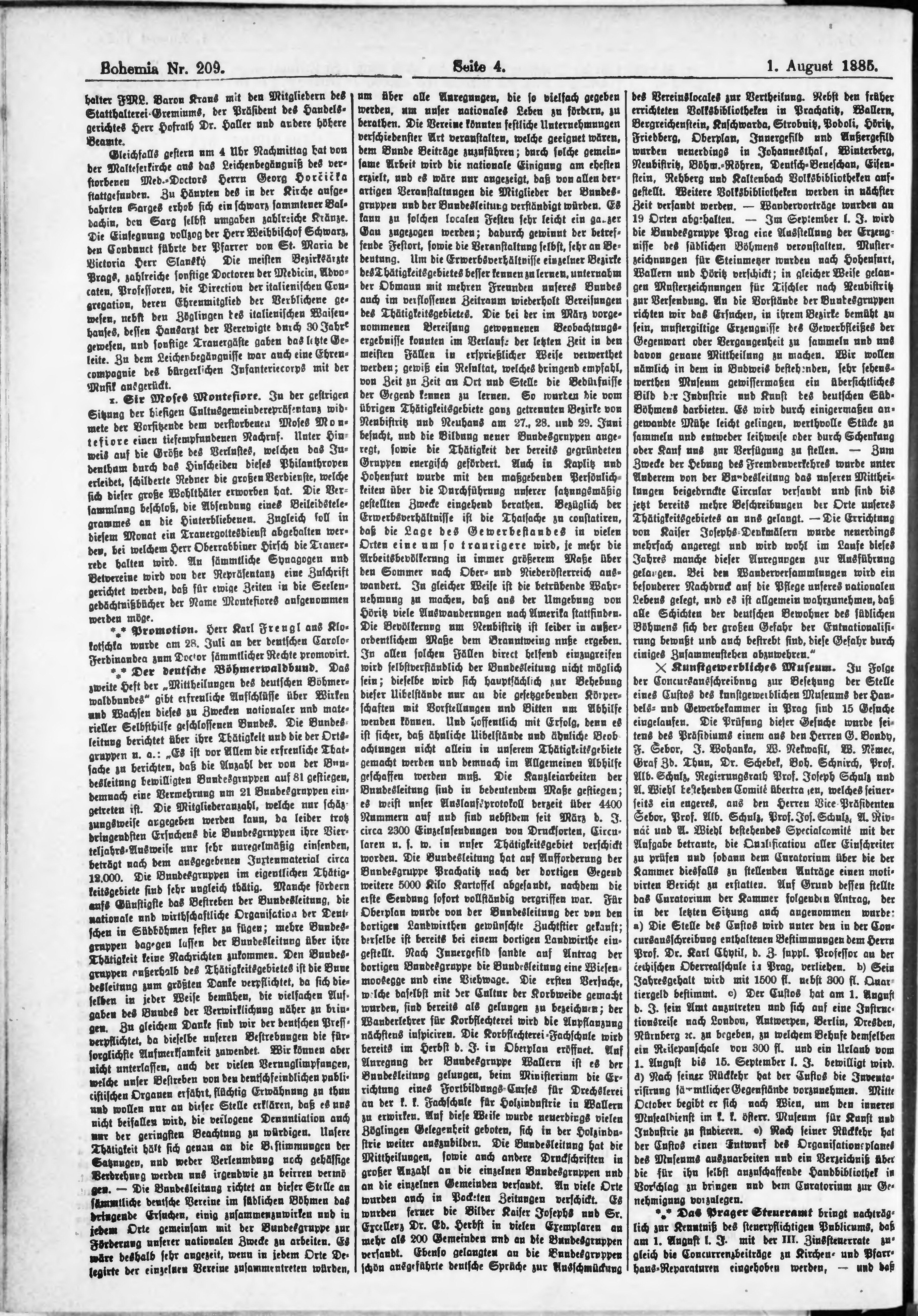 * Datum vydání výtisku: 1.8.1885 Číslo výtisku: 209
