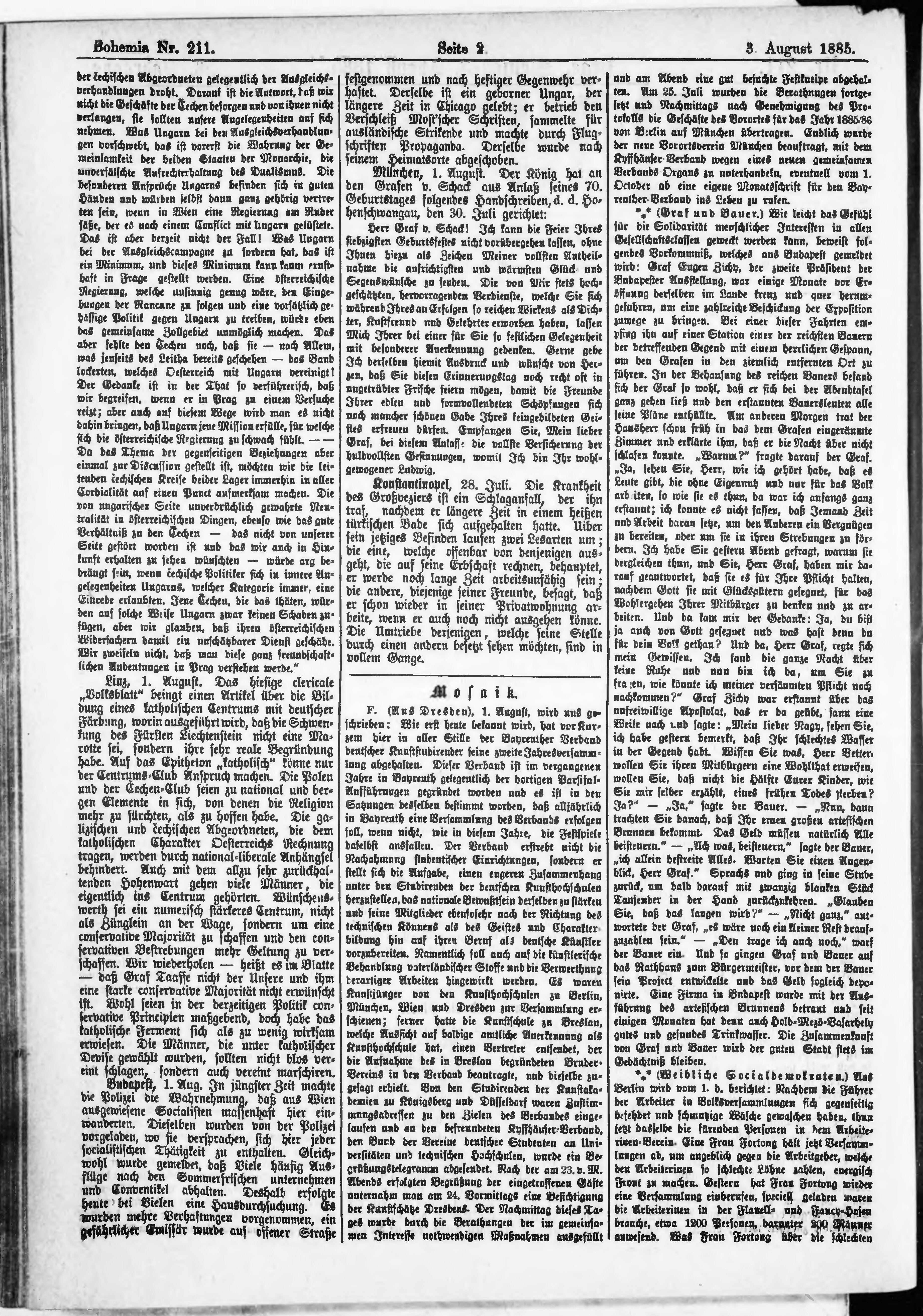 * Datum vydání výtisku: 3.8.1885 Číslo výtisku: 211