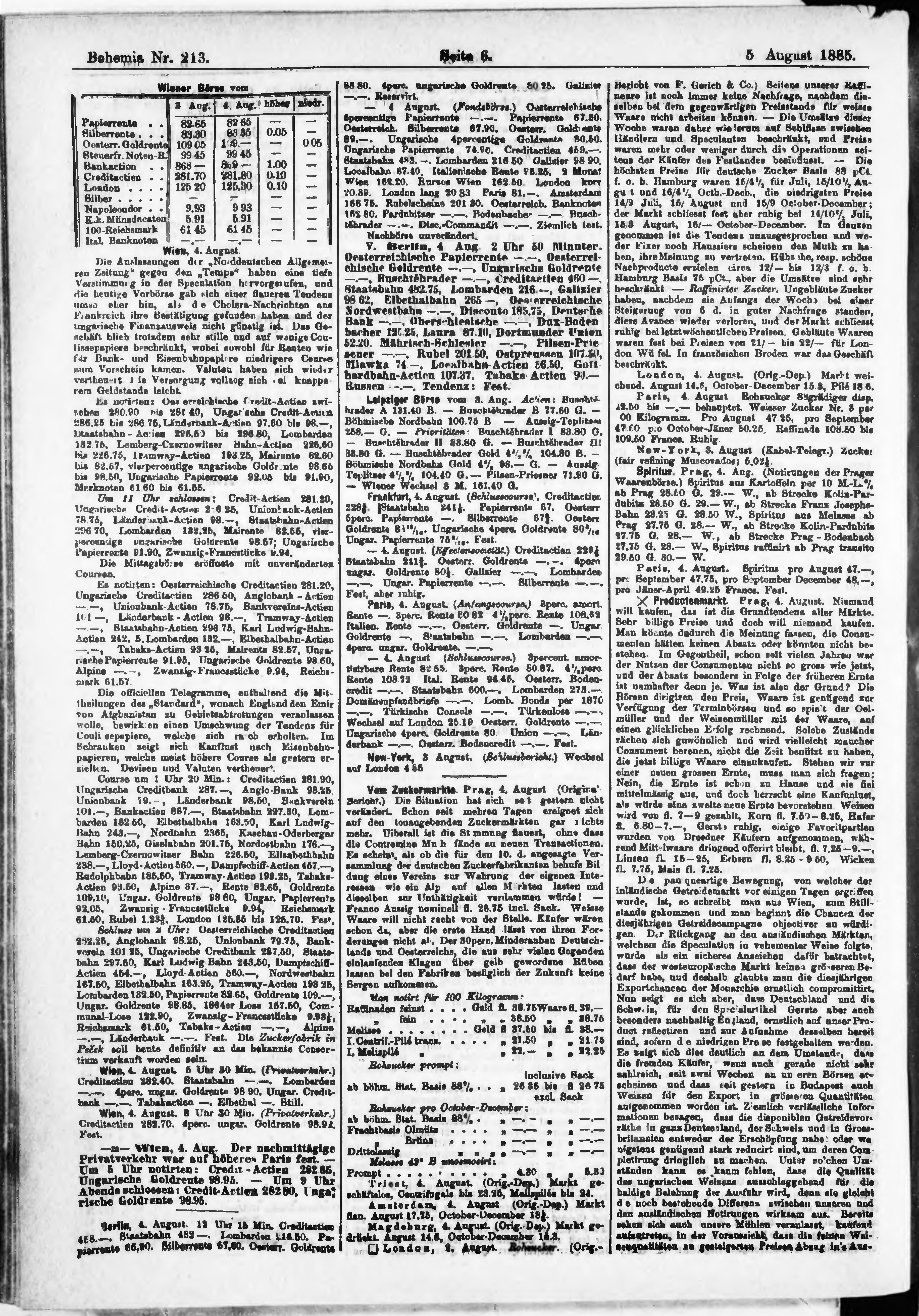* Datum vydání výtisku: 5.8.1885 Číslo výtisku: 213