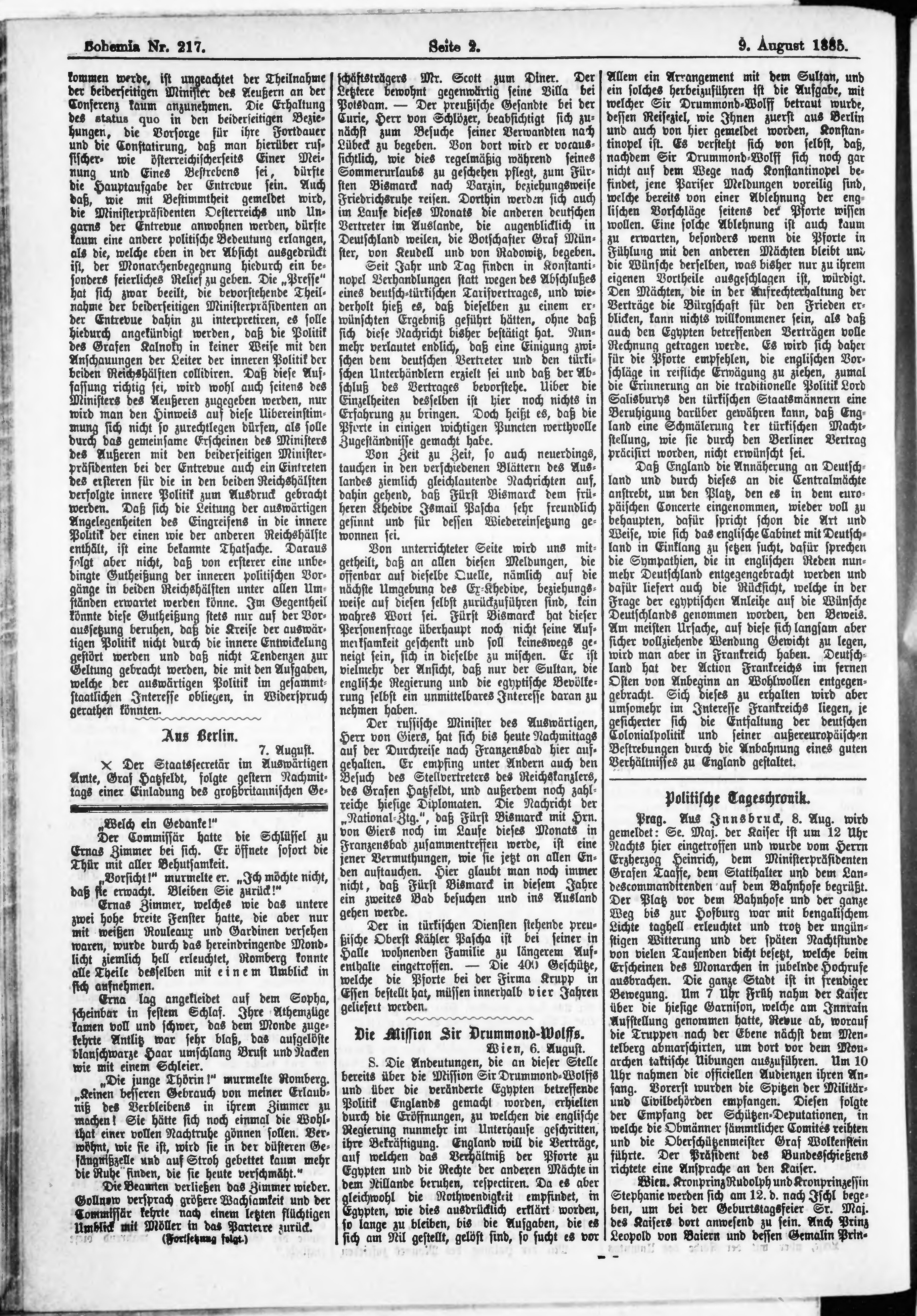 * Datum vydání výtisku: 9.8.1885 Číslo výtisku: 217
