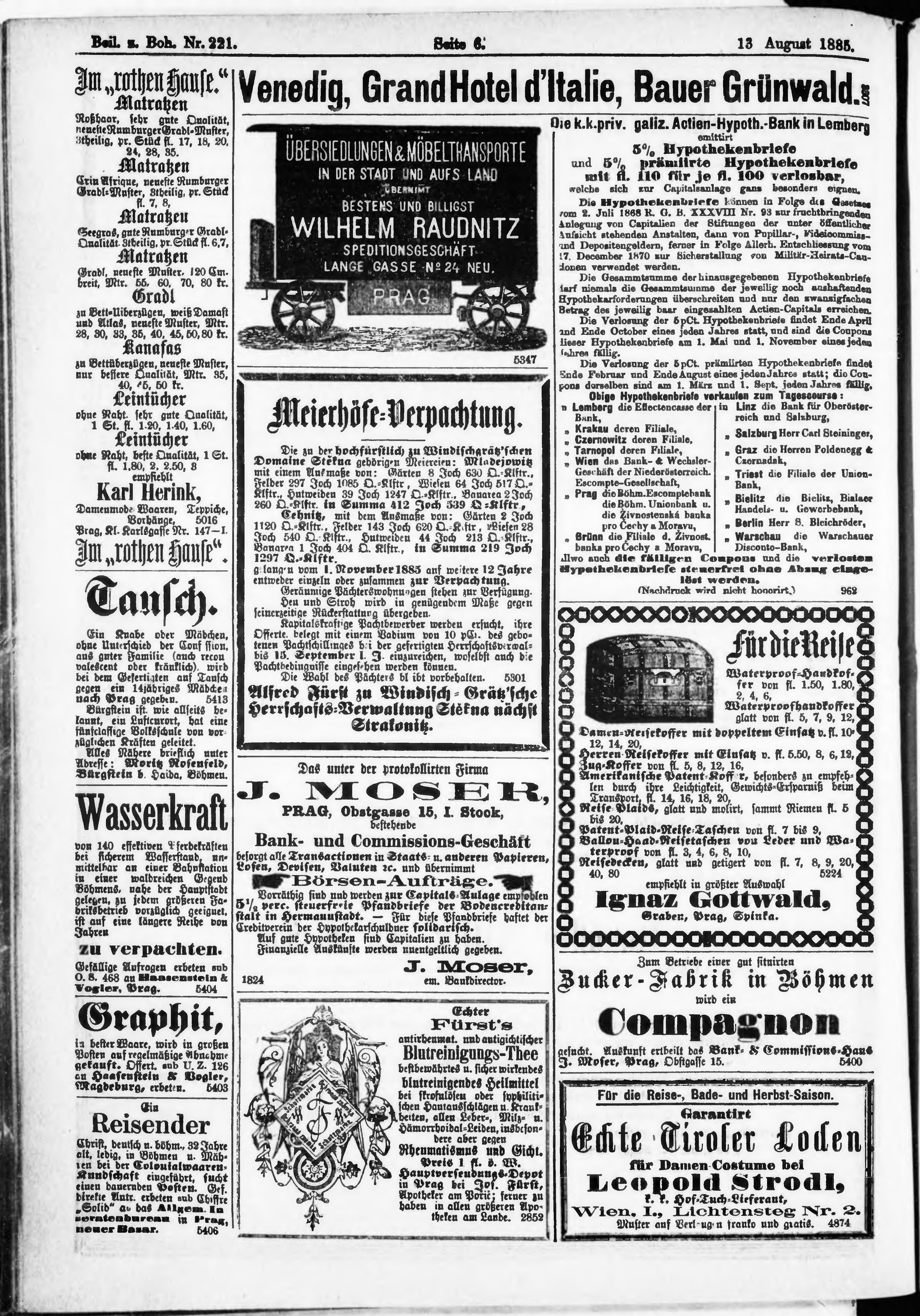 * Datum vydání výtisku: 13.8.1885 Číslo výtisku: 221 Typ výtisku: příloha Poznámky k výtisku: příloha