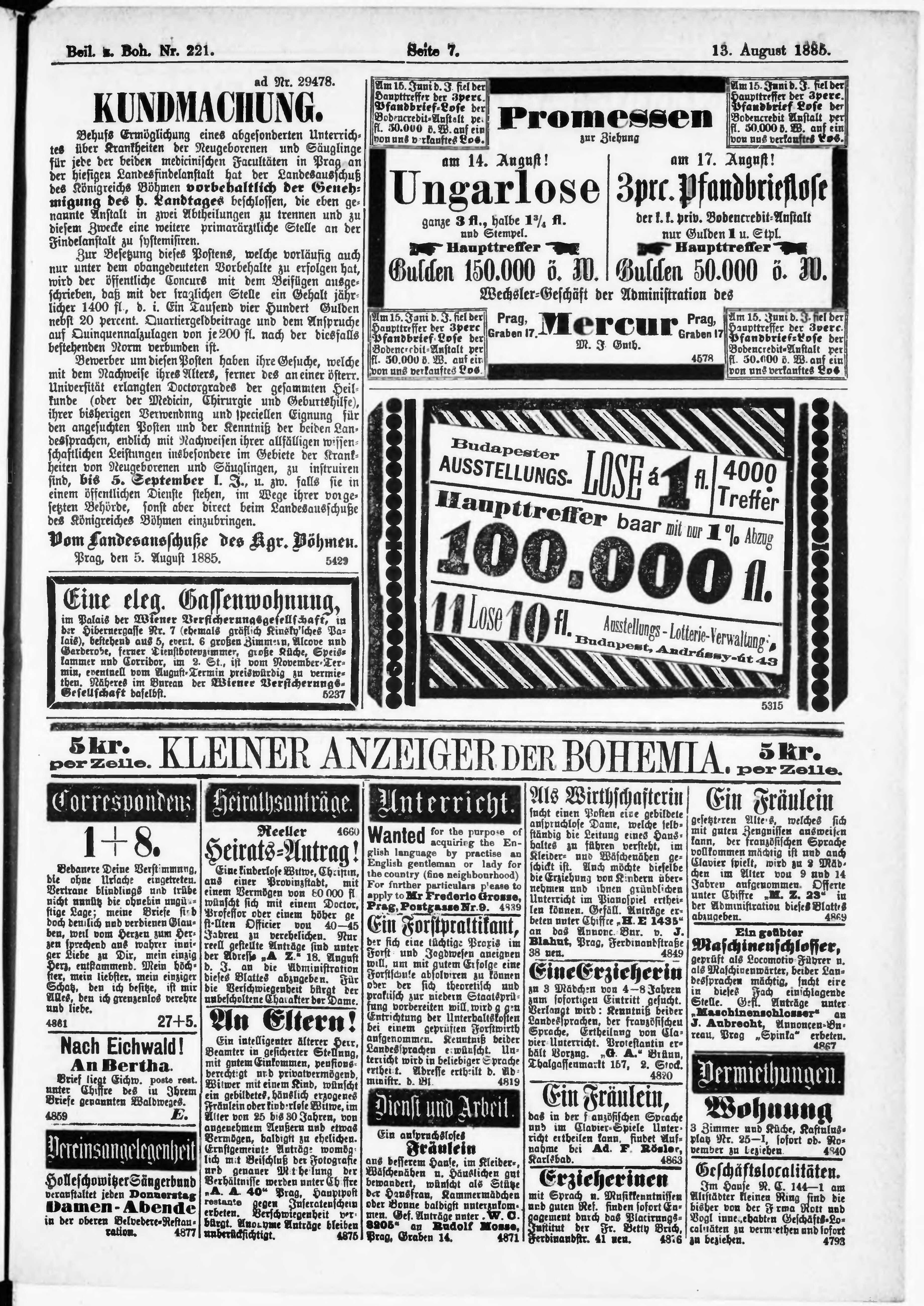 * Datum vydání výtisku: 13.8.1885 Číslo výtisku: 221 Typ výtisku: příloha Poznámky k výtisku: příloha