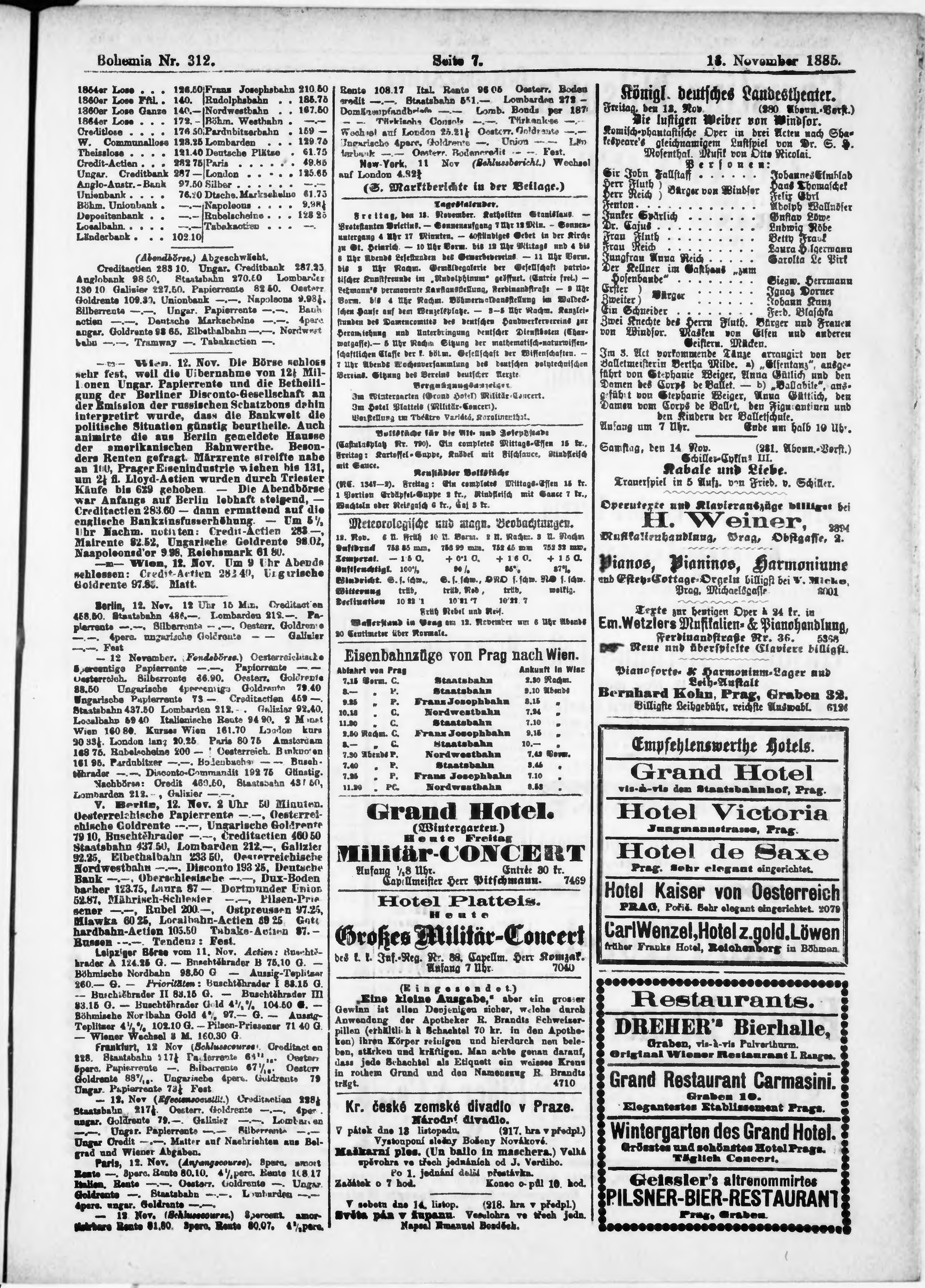 * Datum vydání výtisku: 13.11.1885 Číslo výtisku: 312