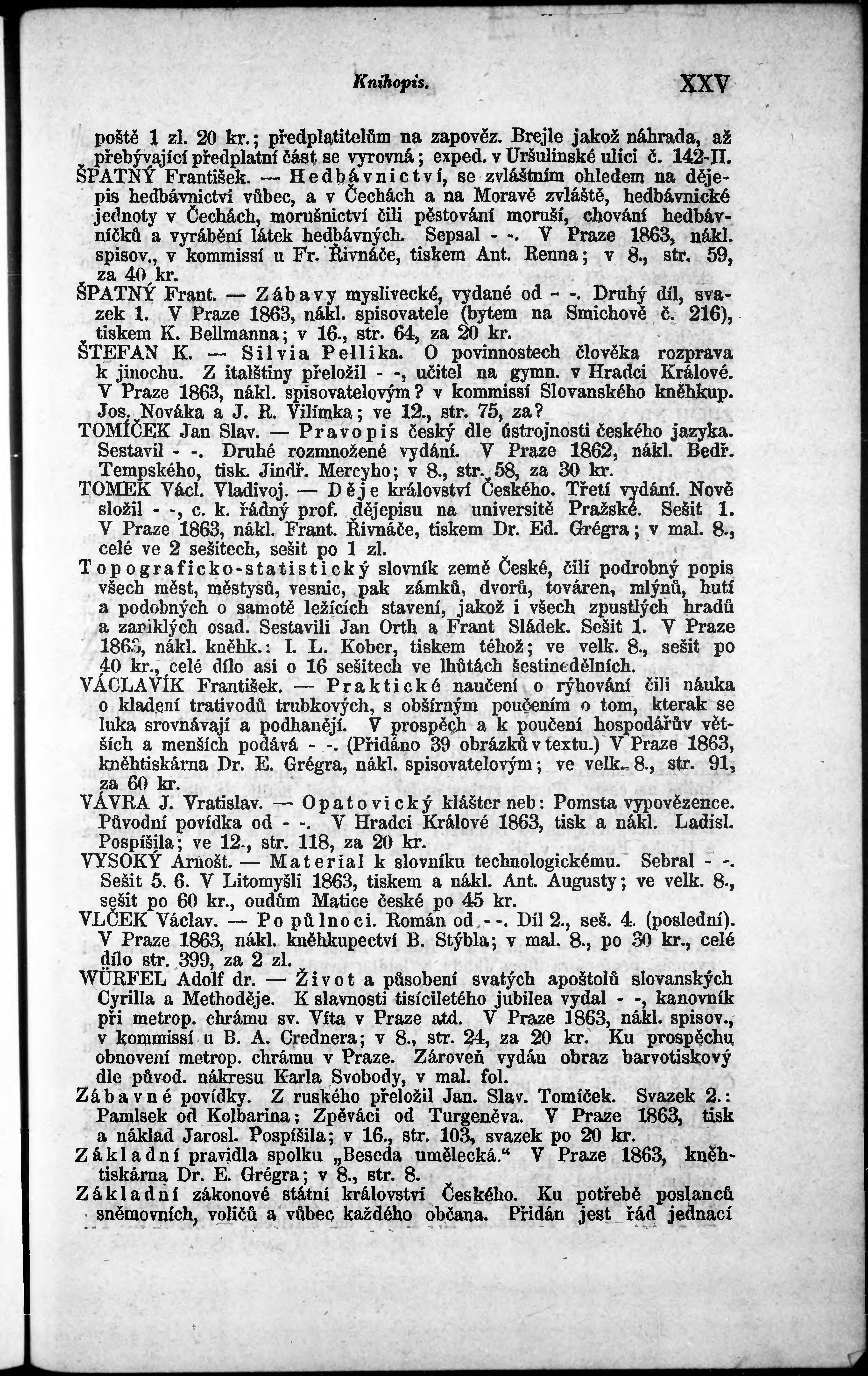 * Datum vydání výtisku: 1863 Číslo výtisku: 4 Typ výtisku: příloha